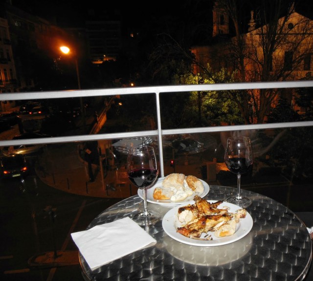 We arrived in the city at about 8 a.m. Tuesday, April 28. The plane trip was not pleasant, and there was a moment when we considered swiping our credit card to obtain those luxury seats offered at an additional $750 each. We landed safely, though, if a bit cranky. The Lisbon City Hotel is a great place, a few blocks from the river and from the lively Baxia district (pronounced, to our surprise, as BYE-shah). We went there after a few hours of sleep. We spent Tuesday walking around and getting our bearings and having some of the local wine, Vino Verde, which is white, crisp and slightly sparkly. Lunch was boiled prawns with a lime/mayo dipping sauce and some salt cod cakes and dinner was maybe the best grilled chicken we’ve ever had. Betsy is stopping back by the shop to ask about the spices. Hopefully, we can recreate it at home. We had dinner on our balcony and then went to bed early.