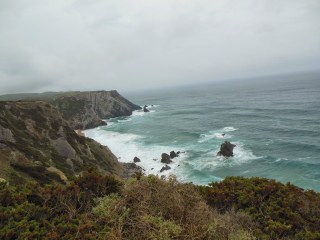 We were driven to a lighthouse at Cabo da Roca, the western most point of Europe. It was foggy and rainy, but that didn’t stop the tour buses from arriving by droves. We didn’t hang out there long. We headed out on our walk toward our new location.