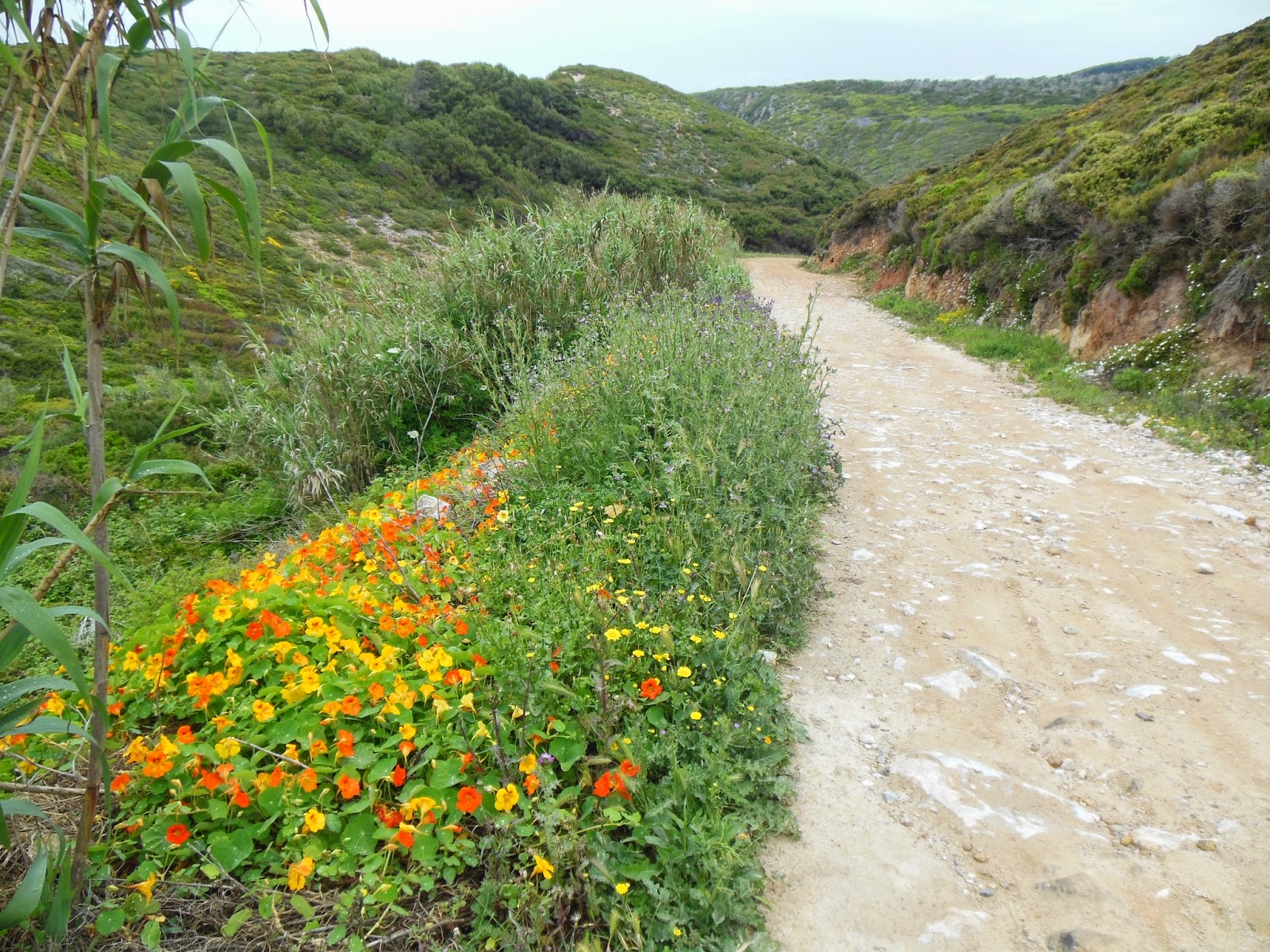We walked that beautiful path more than hour before turning inland and heading to the place we are now staying, which, of course, is at the top of a different mountain. That meant we had to go down in the valley and then start the walk up and up and up…I know you get the idea. We arrived gasping for breath, red-faced and ready to rest.