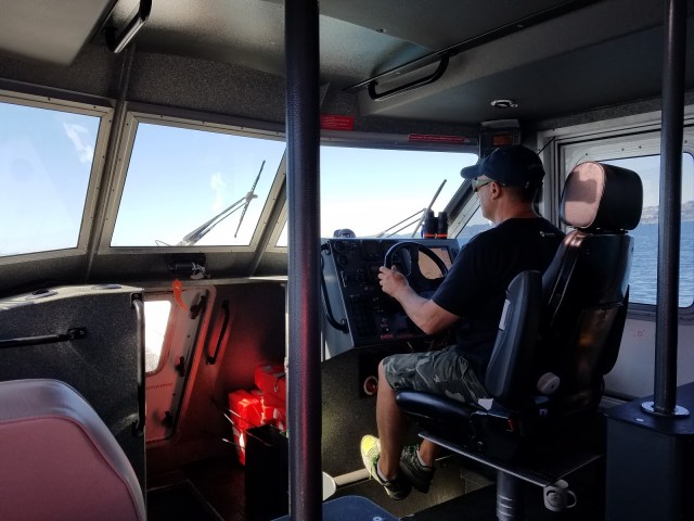 We set sail at 10:30 a.m. We were (wrongly) a little disappointed that we weren’t traveling on a zodiac, which is raft rather than a boat. But it’s not really tourist season here so the whale watch companies don’t have as many options as in the height of summer.