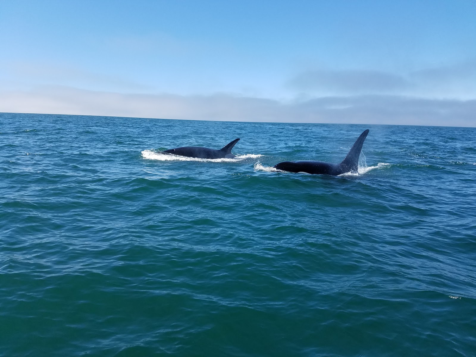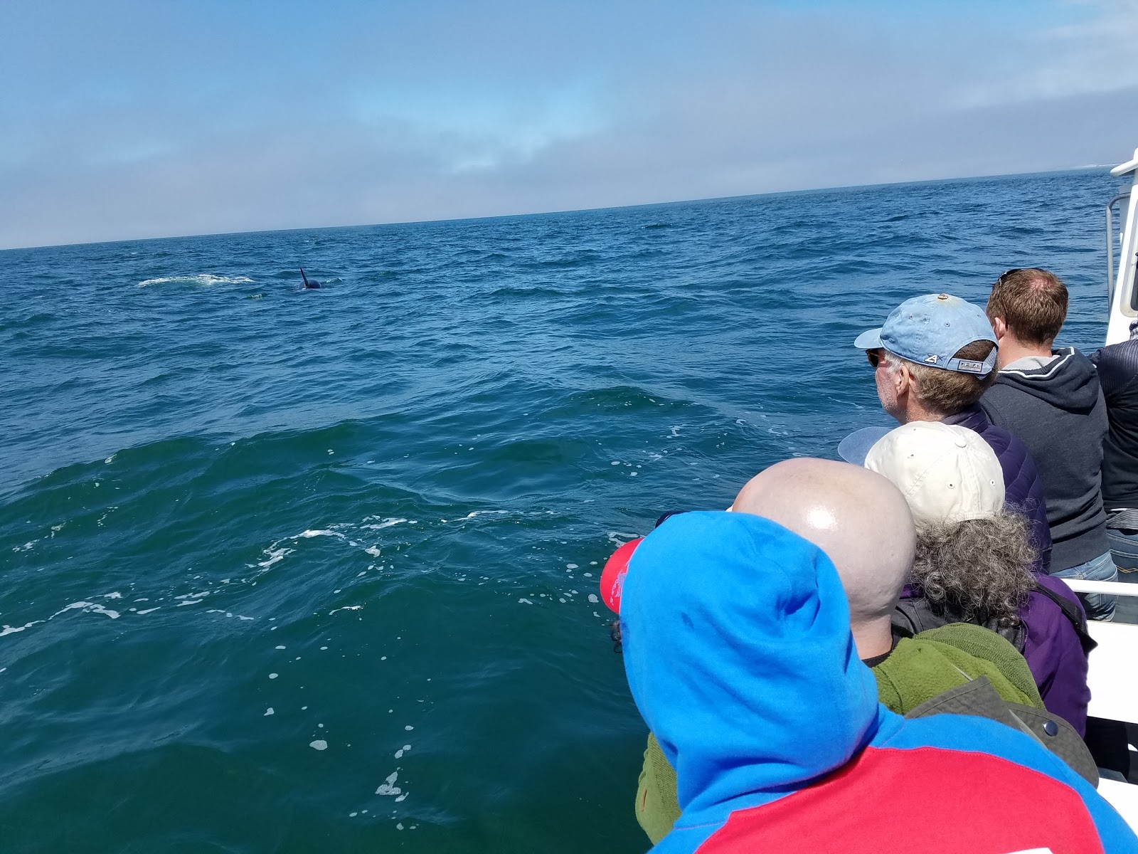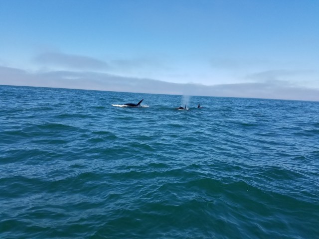 The big male was alone at first and then a female and a younger whale joined him. They surfaced all around our boat and took a look at us. Jim kept us in the perfect spot. The pictures really don’t do it justice…when they got really close I didn’t want to be seeing them through my phone.