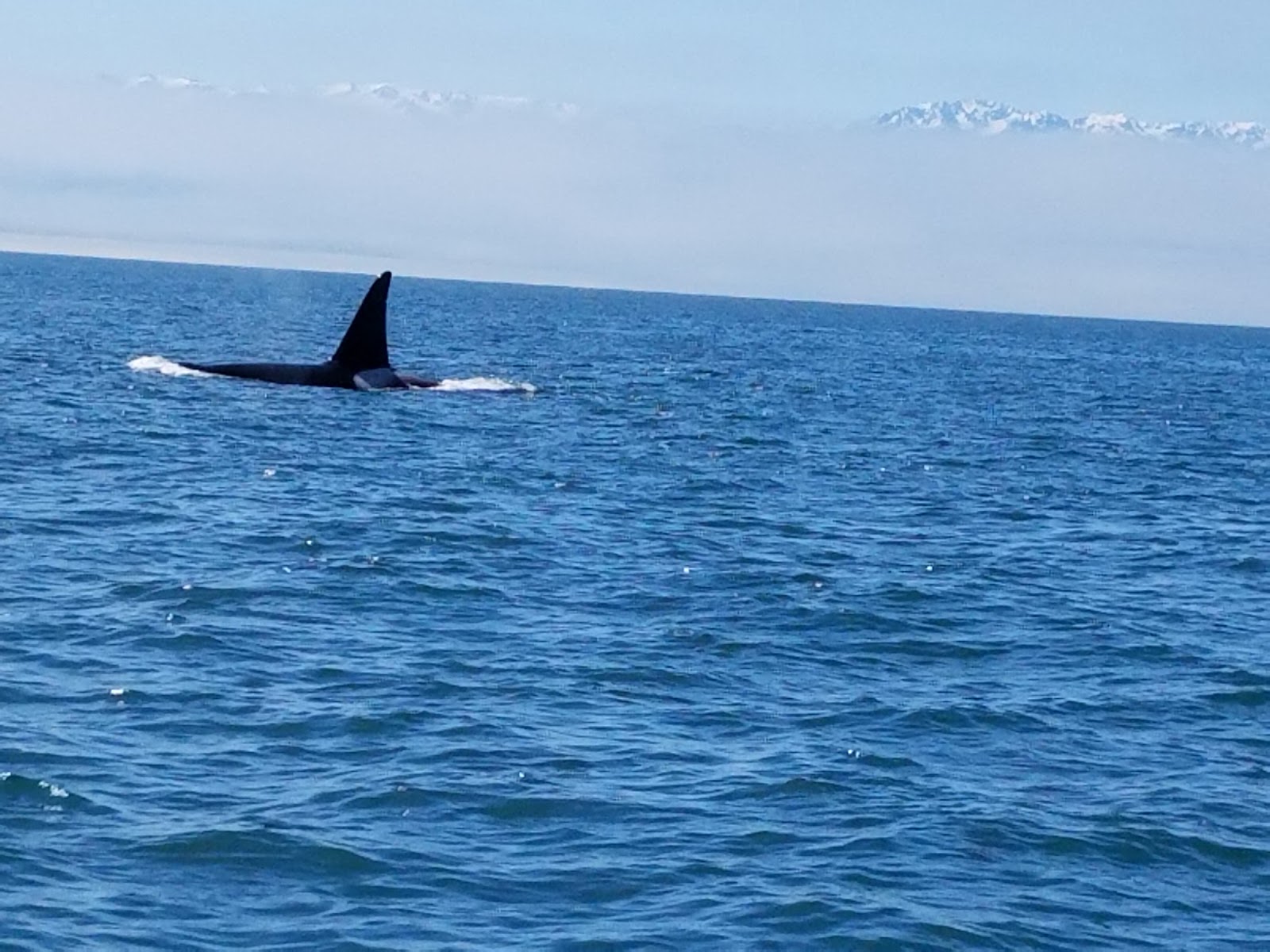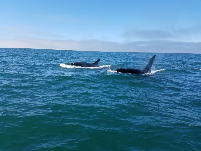 We boarded the Luna, about 10 of us and the captain, Jim (our hero). We set off on our three-hour tour and were so excited. Just 20 minutes into the trip, Captain Jim spots a fin. That guy has eagle eyes. It was a big male orca. He was a transient, Jim said, which meant he eats seals in addition to fish. There are three pods of orcas who live in those waters and they only eat fish. This is an important distinction.