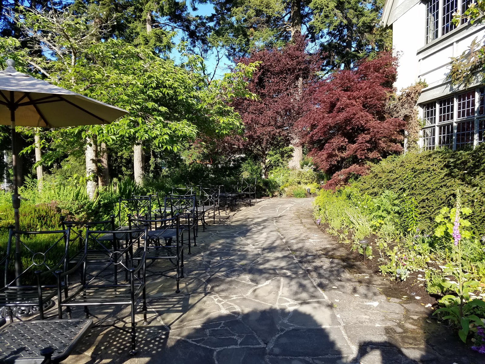 We did get lost and made the same circle three times, which added somewhere around 3 miles to our already long day. Trails are on a hit-or-miss wayfinding mark, and we were relieved to know it wasn’t just us — another walking pair made the same mistake we did. We had a “rugged” area at King’s Cove, which required us to literally pull ourselves up over scary, rocky points and then down again, which was even scarier. We walked out of the park, onto pavement for a while and then onto an Indian reservation filled with more huge trees, moss, rocks and nature-laden trails. Finally — FINALLY — we made it back to Fulford Harbor, which we gratefully entered a restaurant and enjoyed a couple of well-deserved drinks while waiting on our cab to take us on the 14-mile journey back to the welcoming Hastings House.