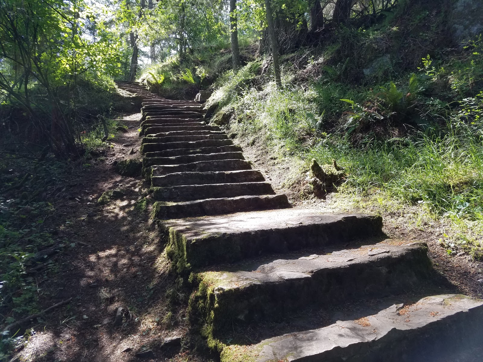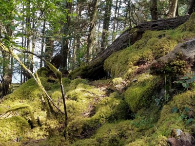 We set off on our trip to the other side of the island with Gabrielle, our driver, to Ruckle Provincial Park, which boasts an rich array of trails, water views, moss-covered trees and rocks, Hobbit-like woods and challenges.