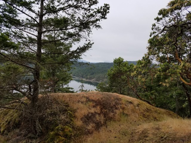 We walked around from The Spit and climbed (a common thing) up to a beautiful vista overlooking South Pender Island, enjoying a small picnic and the view.