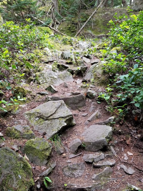 Ok. That’s ok. We were just on a rugged trail two days before in Ruckle Park, right? The walk down was a little harrowing, climbing down rocks that were, um, straight down. Straight. Down. But the water and trails below looked great. Which they were.