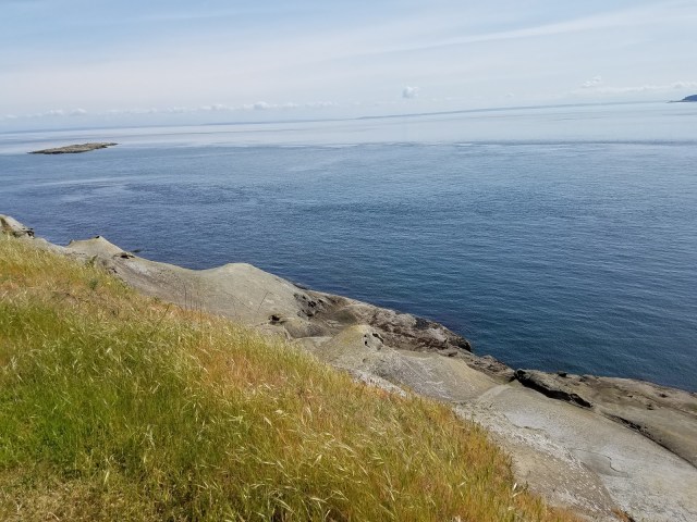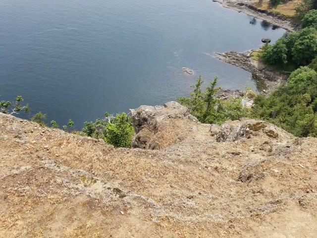 We headed out of this idyllic spot, passing two campers who were relaxing in their respective campsites, and then took in Monarch, a point along the cliffs that was so worth the climb. We stayed here for about two hours, watching birds as they lazily caught the wind sheers and taking in the occasional boats sailing by way below. We even spotted a pod of whales as they made their way through the tide. A hummingbird kept buzzing Kim because of her red shirt. We didn’t spot the herd of goats who scramble along the cliffside, but their presence was evident by the droppings and their paths that are right. at. the. edge.