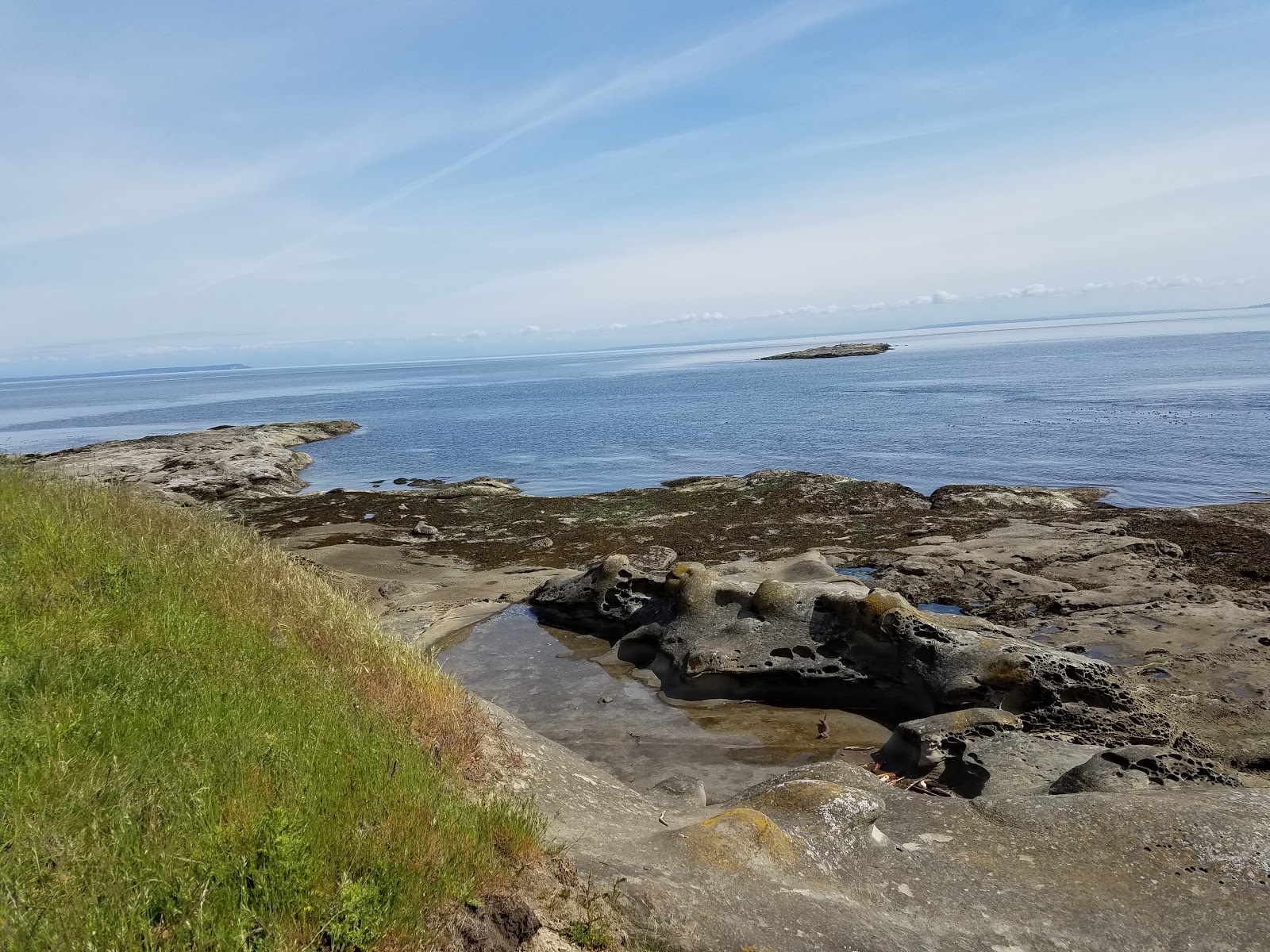The rocky shore has been weathered by centuries of rains and tides.