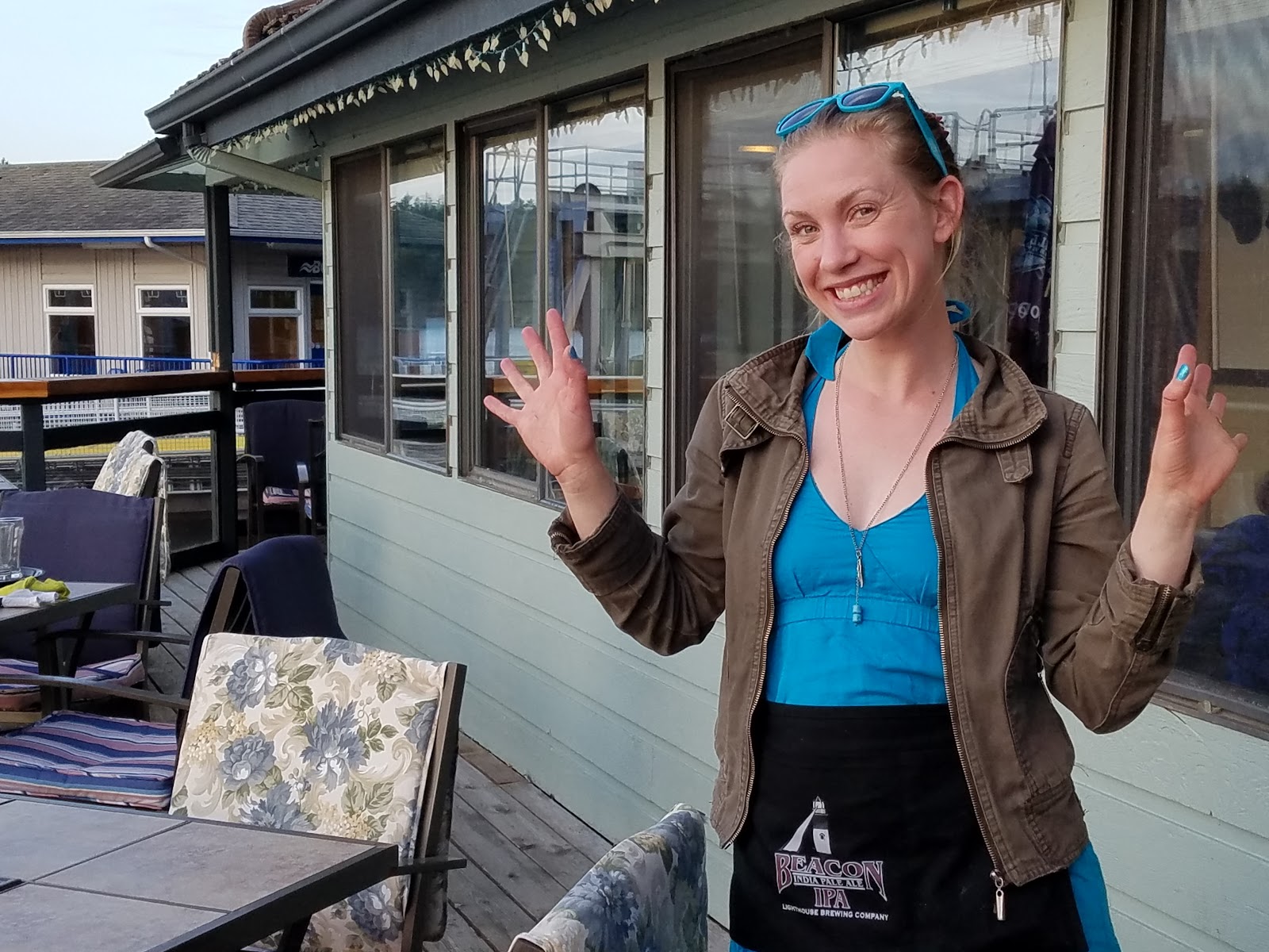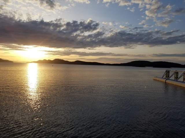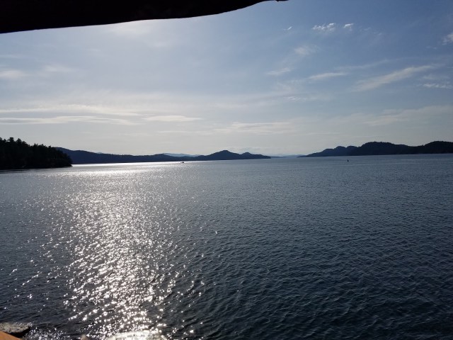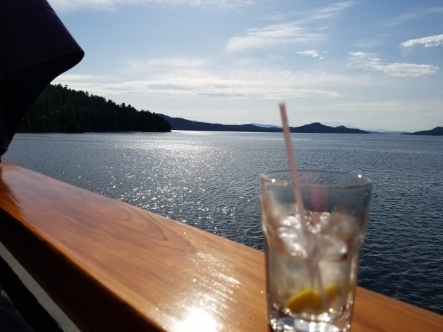 We rested for a bit, then headed back to The Pub (there aren’t many dining options on Saturna) for more delicious halibut and prawns. And that incredible view on the deck.