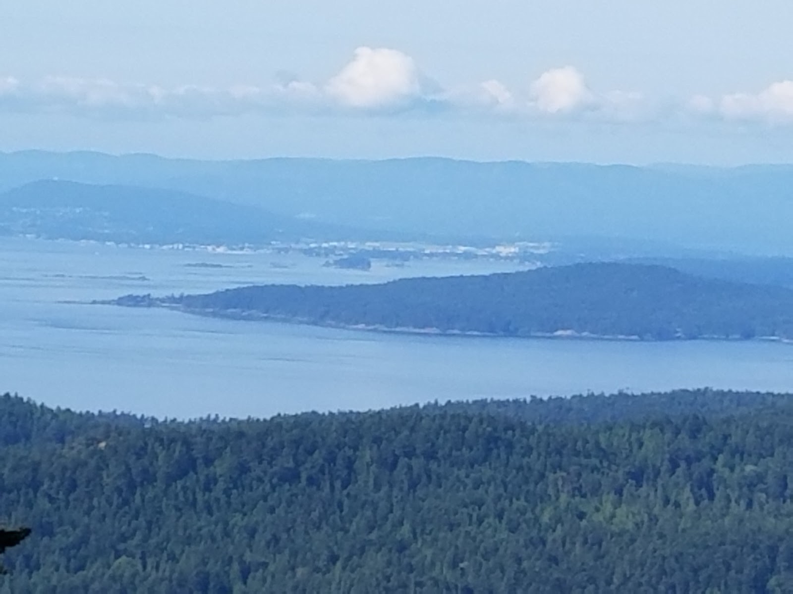 A last look at the islands we have visited — Pender, Galiano and Salt Spring. Saturna is behind us.