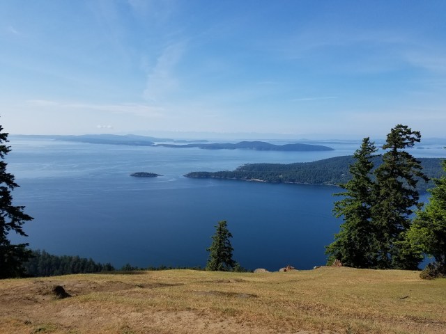 We enjoyed a delicious breakfast prepared in the inn’s kitchen, and set off with Laura, intending to have her drive us to the trail head to start our day’s journey. She had other plans, and off we went on an island tour, taking in the east side of the island (which we would not have seen on our hike) and around to Mount Warbutin, where we could practically touch the sky as we surveyed the beauty below.