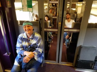 To this: Seated on a little jump seat in a hot area between compartments on the TVG.