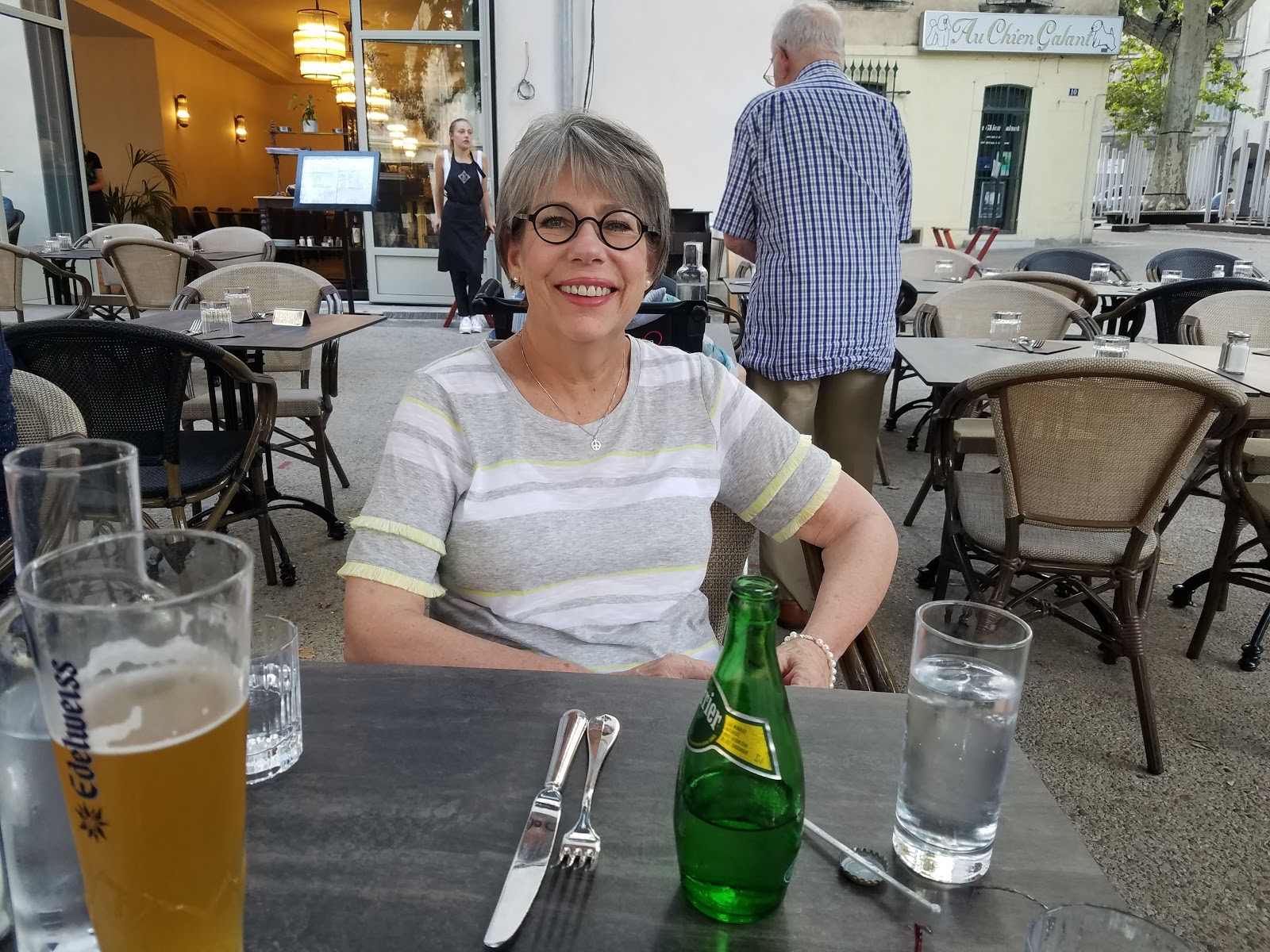 But, we aren’t in Paris just yet. We woke up in Avignon this morning and it’s lovely, and we’re rested, which seems a miracle after 24 hours of travel, some not up to my usual detailed planning. Let’s just say the joy of sleeping in a flat bed seat in Lufthansa business class was dulled a bit by sitting in the tiny jump seats in a hot section between train cars speeding from Lyon to Avignon.