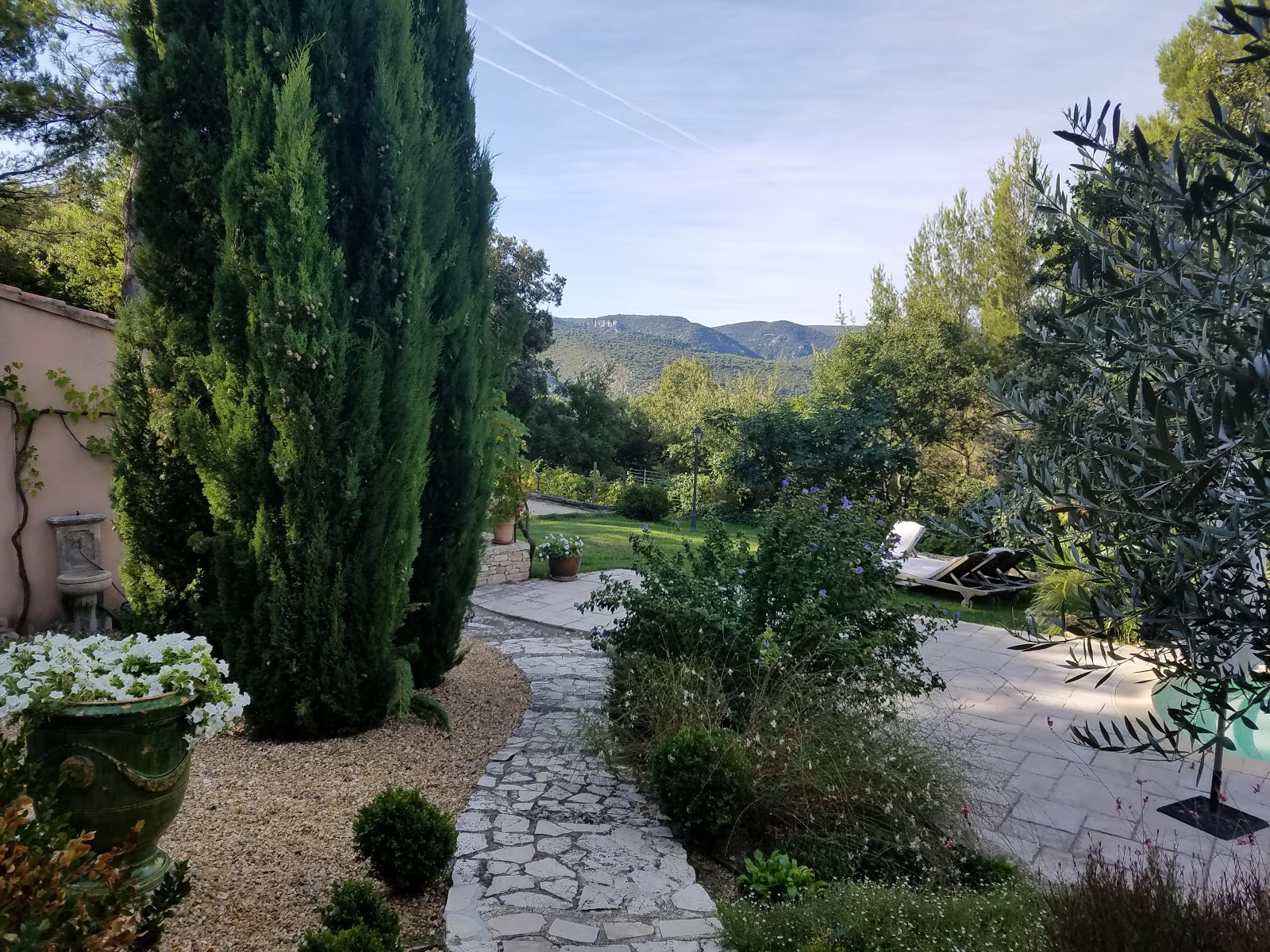 Two days in Provence and so far everything has been perfect. The weather was in the high 90s on Saturday, but now the highs have been in the 80s and the evenings have required sweaters…so perfect.