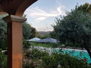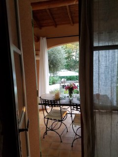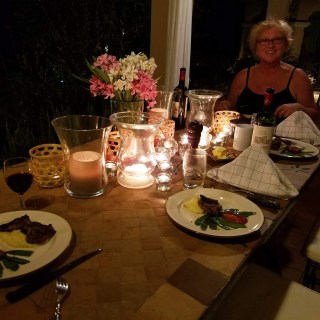 The weather heated up yesterday and we were back home by noon and in the pool. We spent the day here at the villa relaxing, swimming, reading and cooking and then had a wonderful dinner together with copious amounts of red wine.