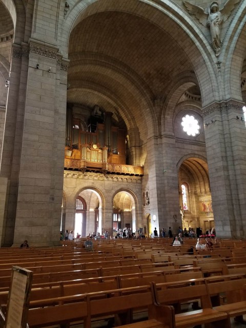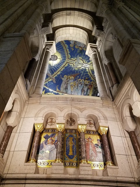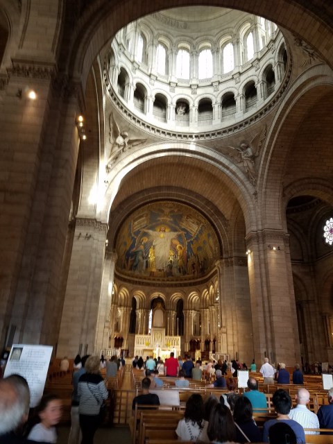 Montmarte is home to the beautiful Sacre Coeur church (Sacred Heart). It is stunning on the outside and inside. A mass was under way when we entered, so we were quiet and reverent and were able to hear the chanting that occurred during the quick service.