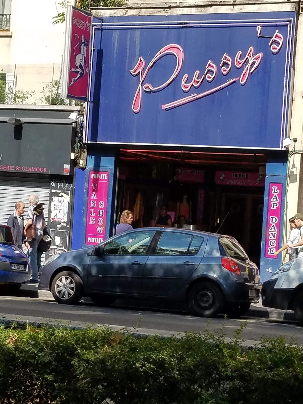 So we left Montmarte on foot, walking down and down…past the Moulin Rouge and into the surrounding neighborhood. We realized we were walking in a particular type of neighborhood. The storefront below was just one of maybe 50 or 60 in this area. We decided to take another route.