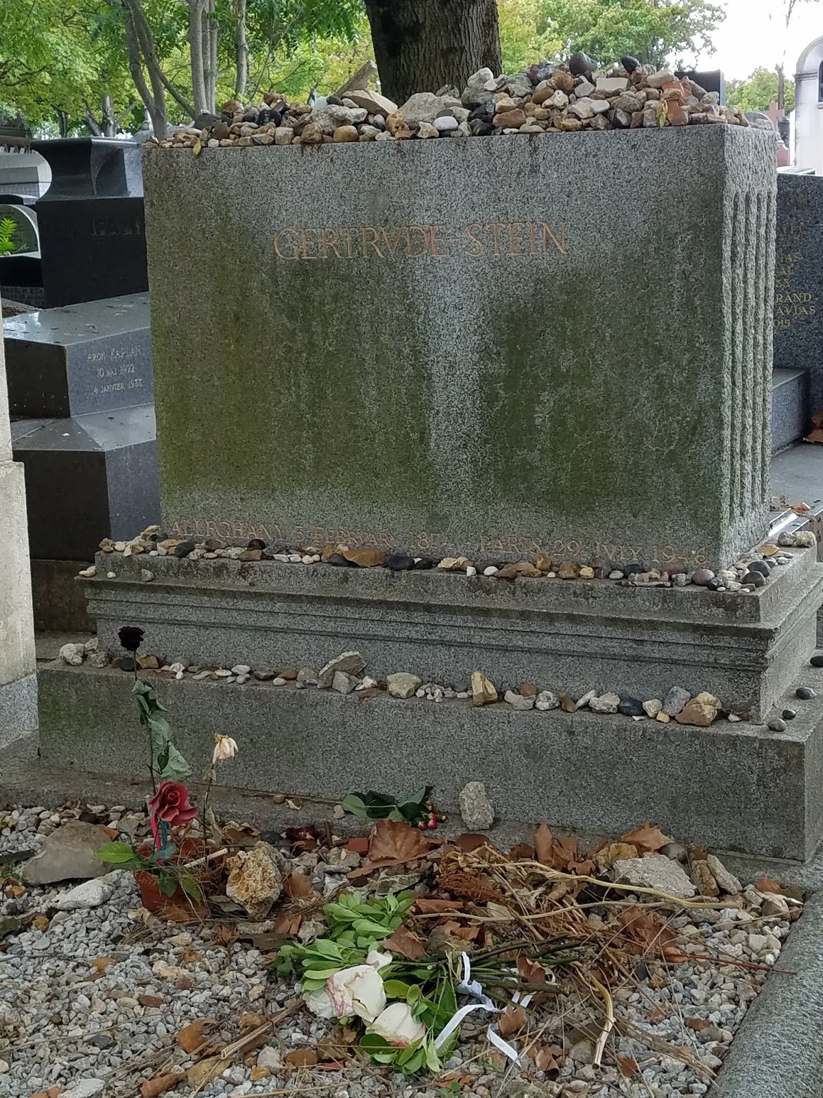 Gertrude Stein, an American writer who made Paris her home. Her life partner was Alice B. Toklas, also buried here. Her name is engraved on the back of the stone.