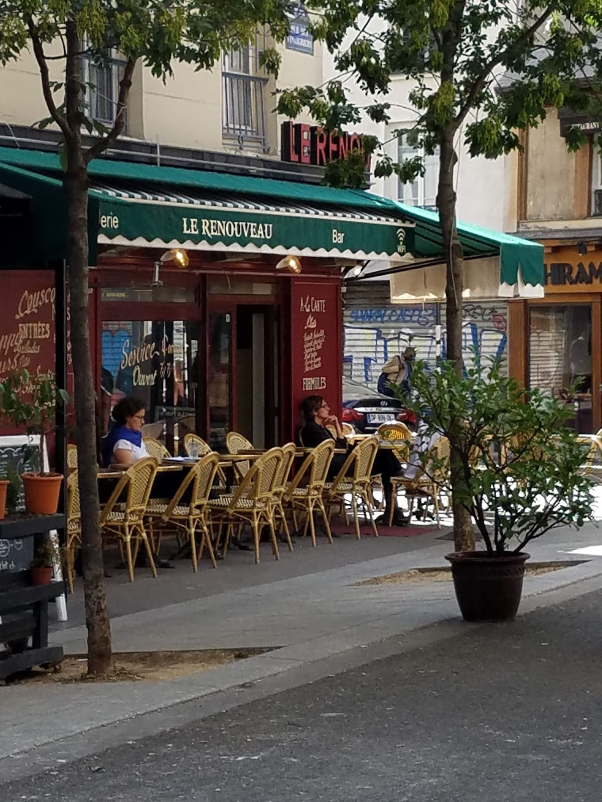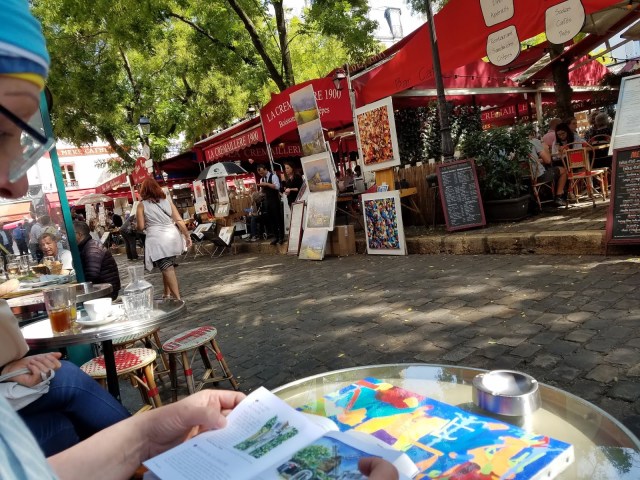 We sat at the table shown below that’s empty. We think that woman in the light coat may be famous. Several people came up and introduced themselves and shook her hand and spoke excitedly in French.