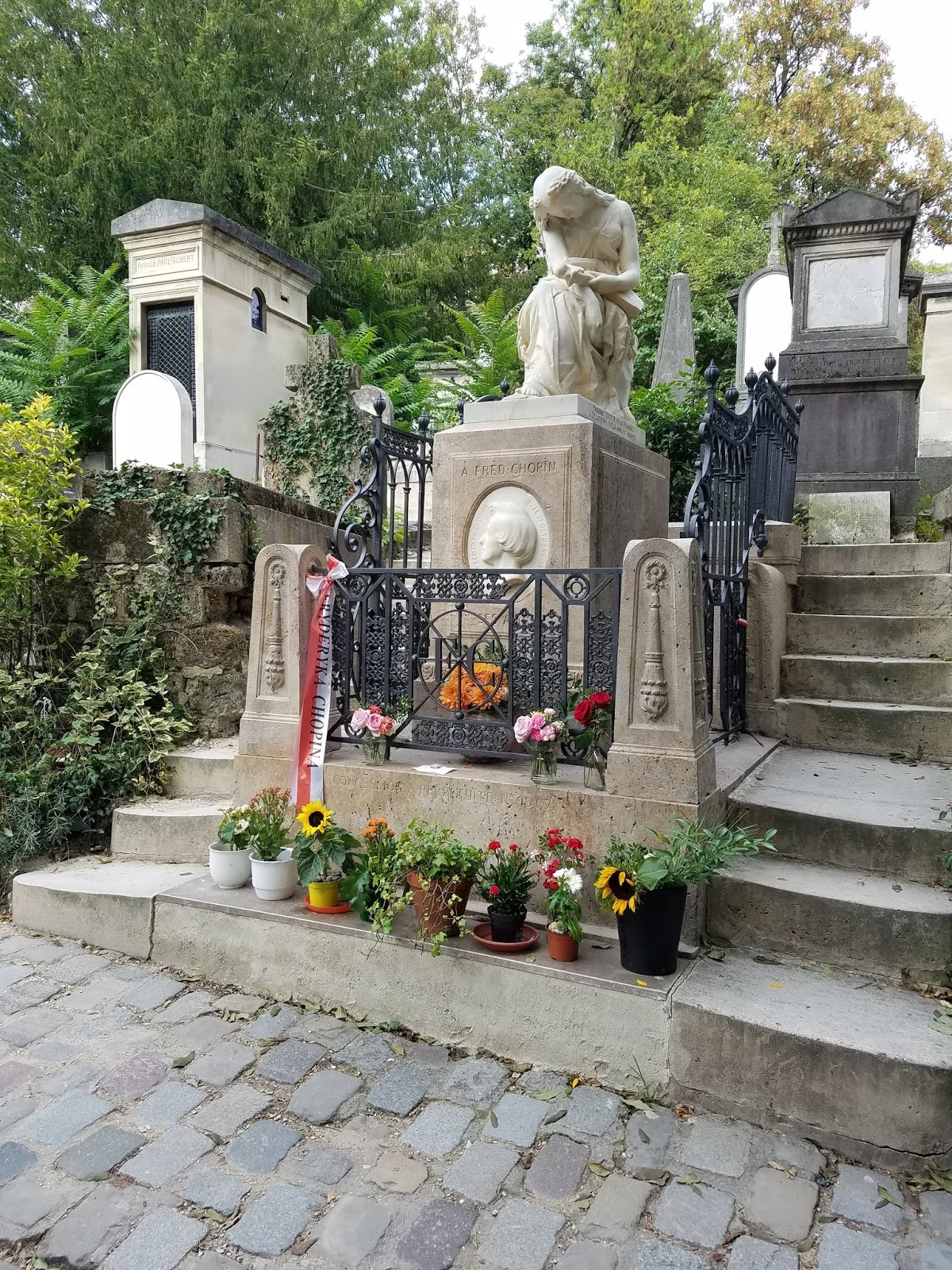 The grave of Chopin, who had tremendous stage fright and despised playing large halls, preferring to play for small gatherings. He died lonely and young, before he reached the age of 40.