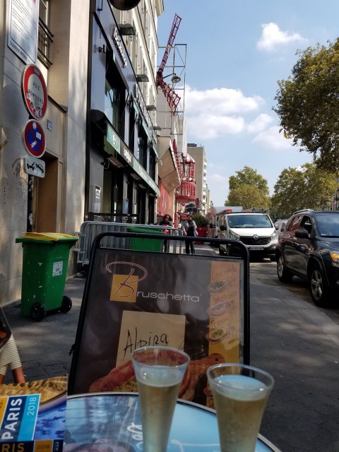 Another head-clearing glass of champagne was necessary, just down the street from the Moulin Rouge.