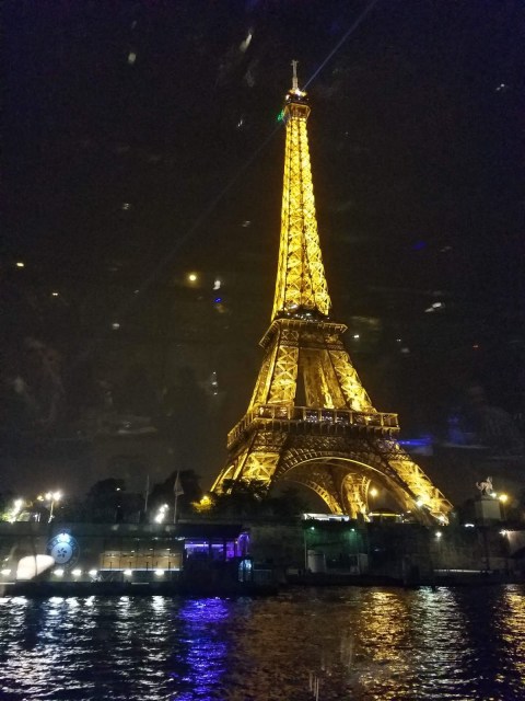 Back home, we rested a while because we had dinner reservations with one of the fancy dinner cruises, Bateaux Parsiens, supposedly the best in the city. I bought the tickets with a guaranteed window table. Every review I read talked about how wonderful it was.