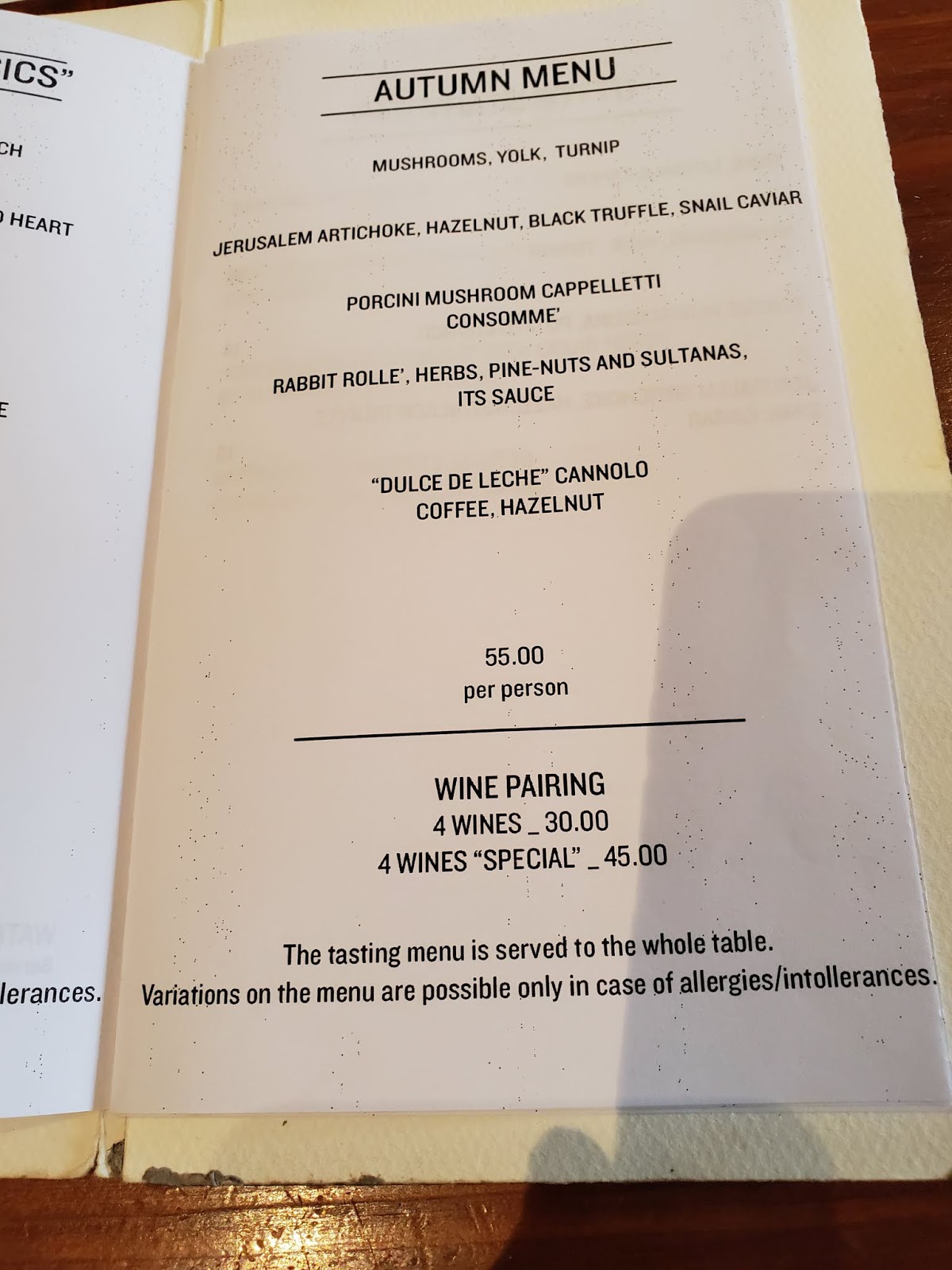 We took a photo of the menu from the night before |