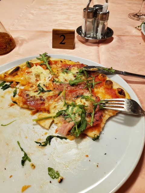 After checking into the Hotel Cortese, which was modern and nice, we decided not to eat in the restaurant. The menu looked good, but more upscale. After the fantastic five-star dinner the night before, we wanted something more simple. So we walked about a mile to a family restaurant, Pizzaria Golden Star. Can’t imagine why they named it that, but was such a great place. No English spoken, but we and the owner who took care of us figured out how to communicate. The pizza was delicious, and it was our first taste of pizza during this trip.