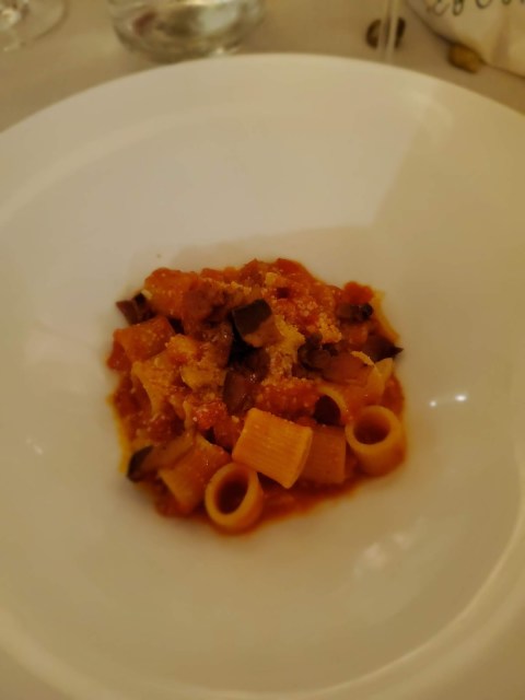 This is when things got to be too much. This was delicious, but we barely ate any of it. A pasta with a fantastic tomato sauce and crispy pork. |