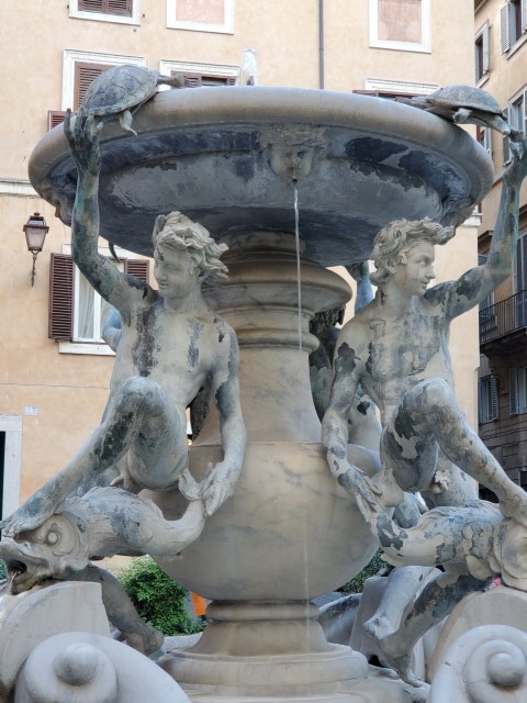 This fountain was built in the 1580s and the turtles were added a century later and are attributed to Bernini.