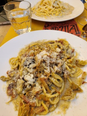 Again, I had cacio e pepe and it was even better than last night. Betsy had another of the four kings of pasta, Gricia, with artichokes added. It was superb.