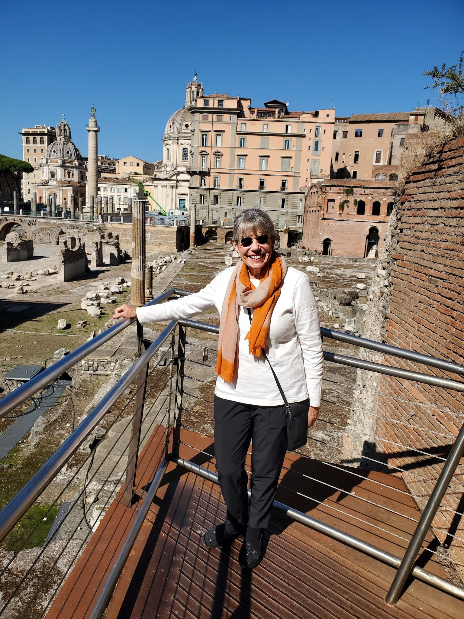 We first went to the Colosseum, which we toured in 2019, with a plan to tour the Roman Forum. No tickets for today, unfortunately. Typically, we would have planned ahead and had the tickets enhanced with “skip the line” and all the bells and whistles. But this time, we didn’t do much planning; it’s been a different kind of year. It turned out fine. It’s impossible to be disappointed on a beautiful day in Rome. On our way to the Forum (isn’t that the name of a play??), we walked by at least a dozen historic sites, filled with centuries-old columns, bricks and stones, many of which were being studied by archeologists. And much restorative work is under way, as tourism and climate change take their toll on these ancient structures.
