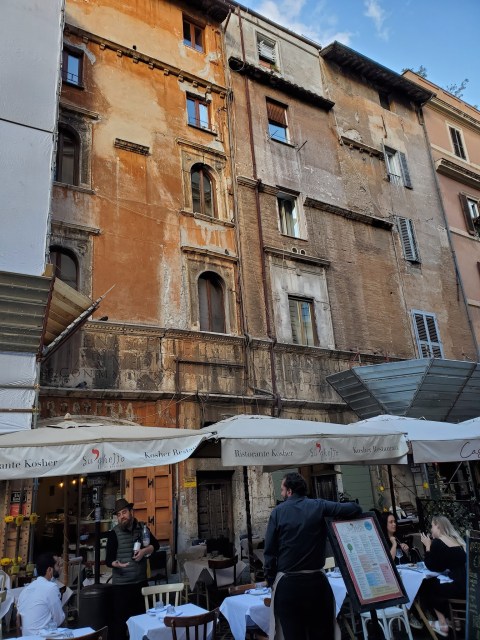 We then set our route for the Jewish Ghetto and started walking. We learned, over and over, that Google Maps isn’t great for walking through Rome. We did eventually find the starting point for the Rick Steves audio tour. It was fantastic. The history of the Jewish Ghetto is filled with sadness but also the resilience of a people of such great strength. From the 16th through the 19th century, Rome’s Jewish population was forced to live in a cramped ghetto, thousands of people living in just seven acres. Over and over these people have been promised things, lied to, stolen from, arrested, tortured and killed, only to come back stronger. On Oct. 16, 1943, after having been promised by the Germans that they wouldn’t arrest the Jews if they managed to put together 133 pounds of gold — which they did, with the help of some Christian Romans — more than 3,000 of them were arrested and taken to the concentration camps of Germany, where most of them died. Only a few returned to Rome, where they once again rebuilt their lives, their neighborhood and their fortunes.