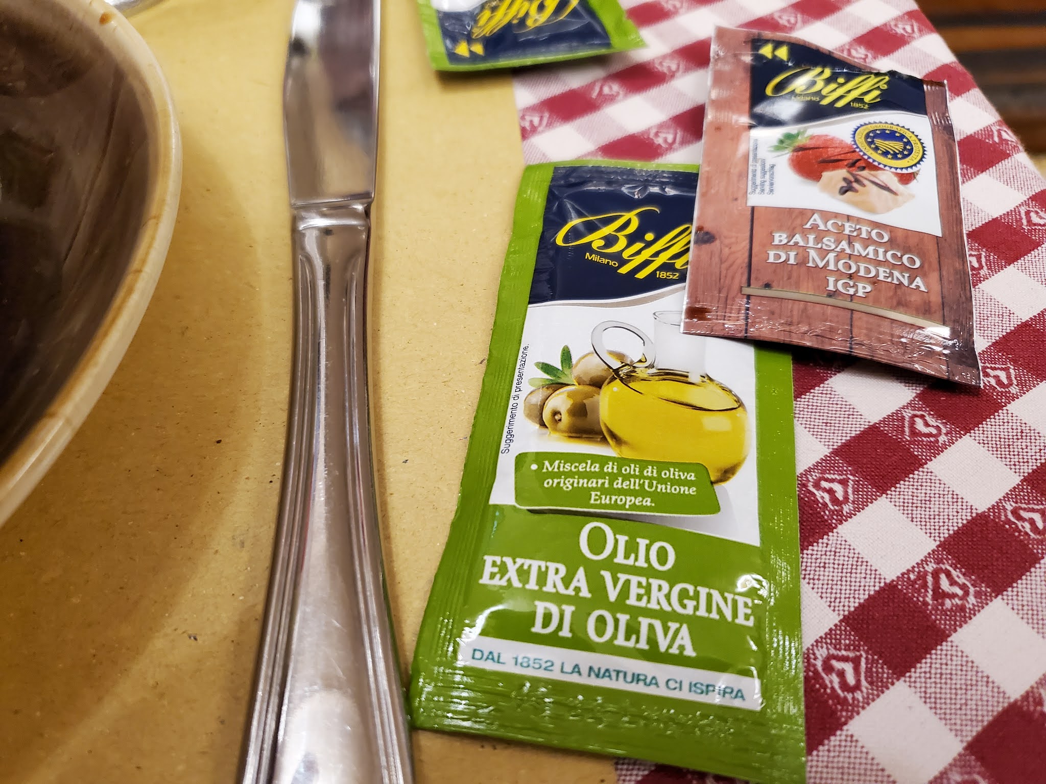 Nothing fancy about this restaurant. Our salad dressing of oil and vinegar came in little packets. We loved that.