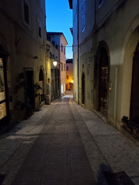 We didn’t feel like hauling our heavy-as-cement luggage to the train station. I asked the hotel manager about a private transfer to Spoleto, thinking that a door-to-door car ride would be the path of least resistance. Thankfully, he could make that happen at an attractive price. We climbed into the back seat of a very fine BMW and were chauffeured to Spoleto. We both napped most of the way.