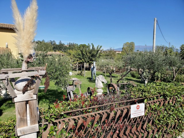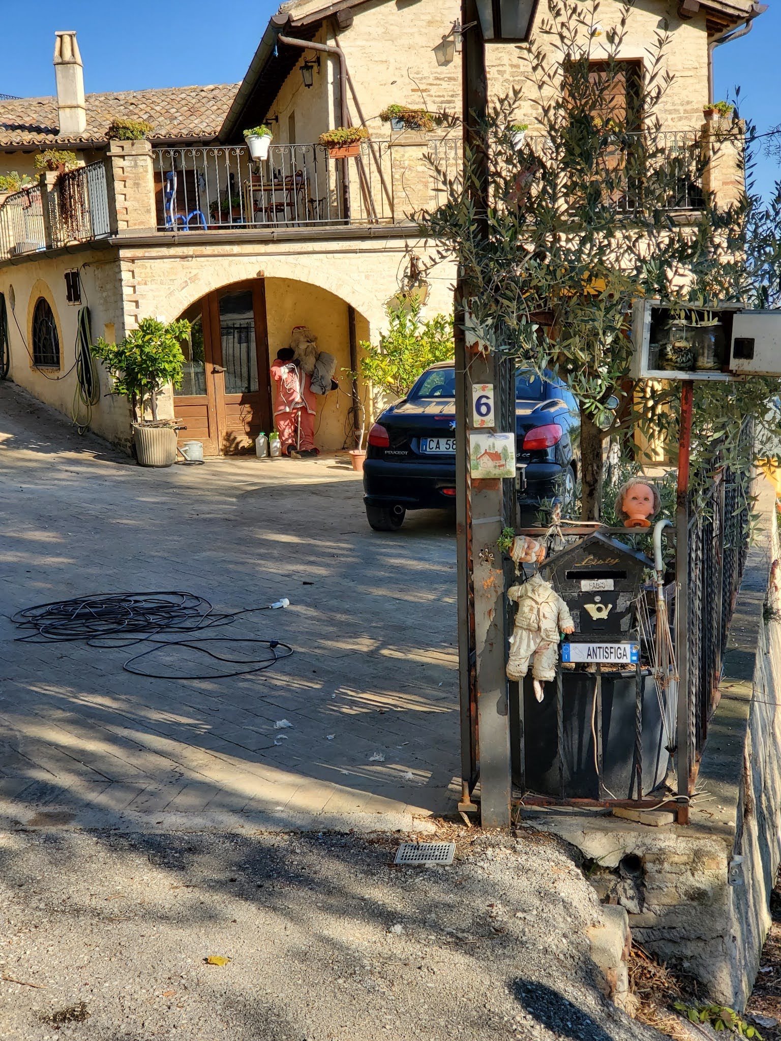 There was one strange encounter. As we left the Montefalco city limits and were walking down the road to find the unpaved path, the directions mentioned passing a small hotel on the left. We found it easily enough, but it was strange.