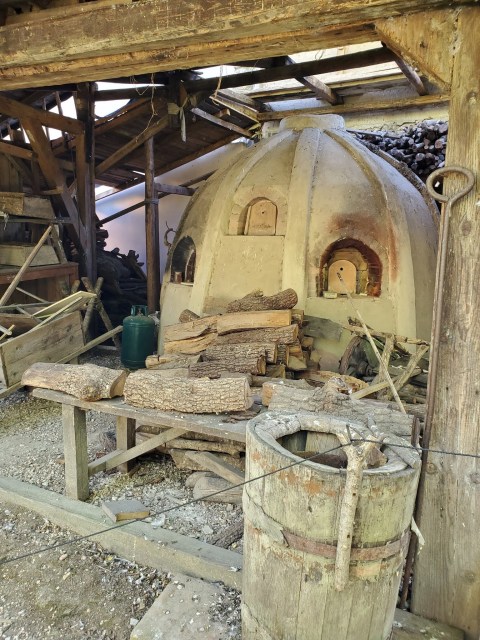 He also took us into his back yard where he has peacocks, rabbits, ducks roaming around. There is a glass blowing furnace, but we didn’t understand whether he had that skill or if someone else had used the furnace.