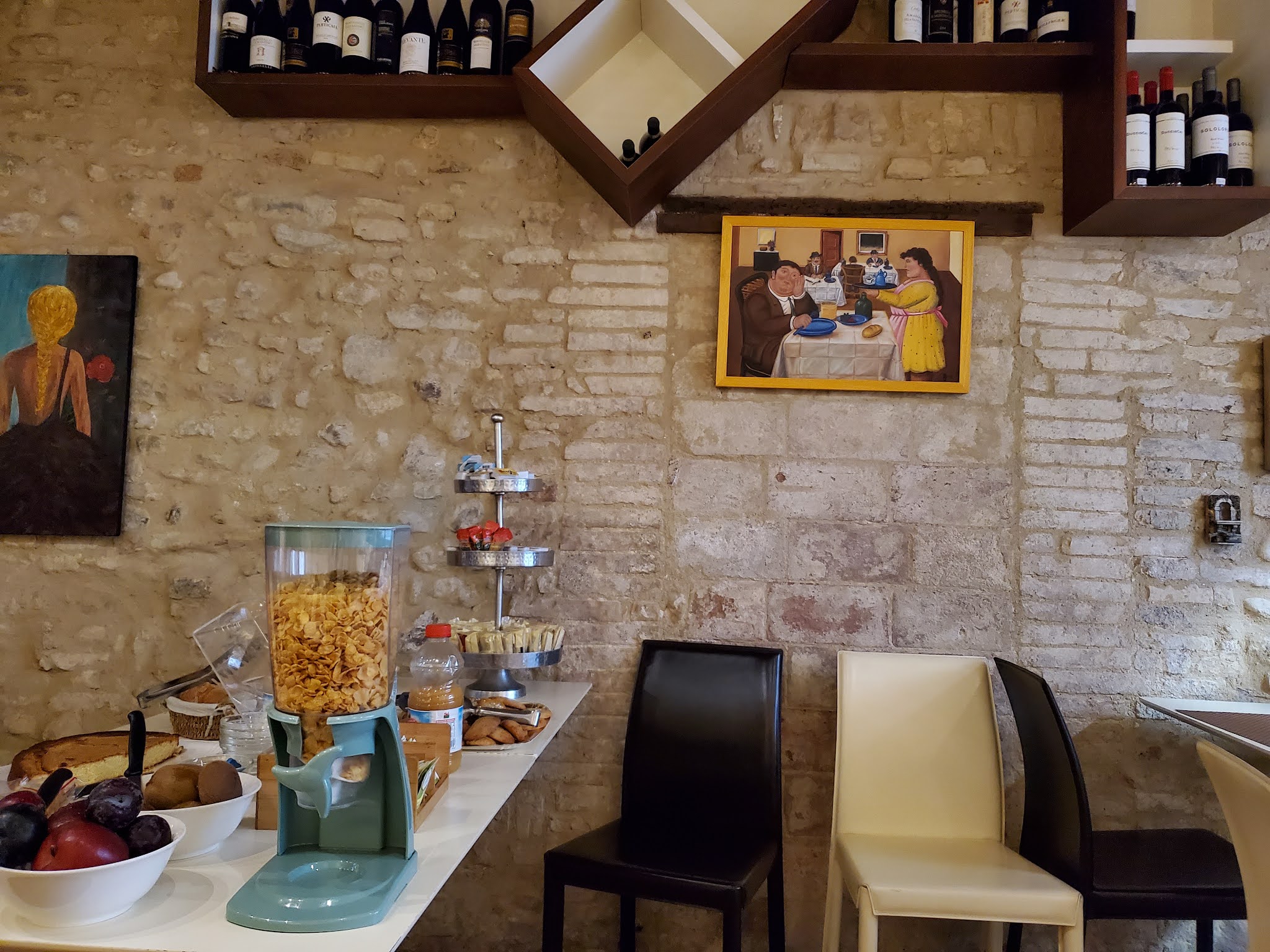 Upon arrival, we checked into our hotel, which is wonderful. It was once a palace for a family in power. Our room is large and spacious. Yes, our view is still of a brick wall, but we don’t mind because the room makes up for that.