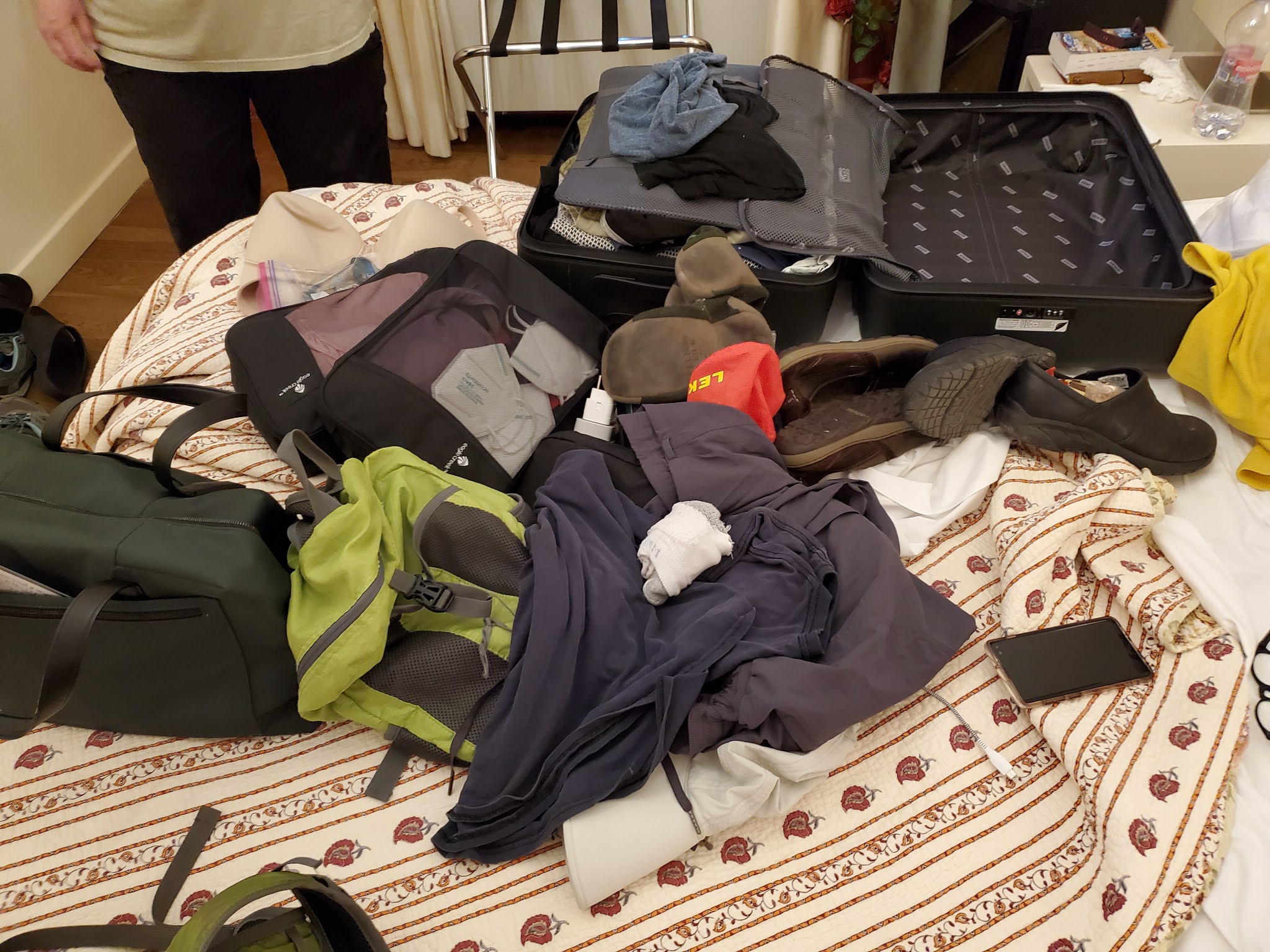 This is pretty much what my packing looks like every morning. I don’t know why I feel the need to pull most everything from my suitcase every time we get to a new hotel room.