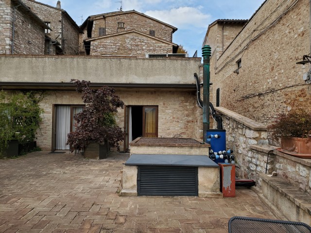 That door is the entrance to our Spello hotel room from the patio. Notice that even in an upgrade, we were given the only room by the heating/cooling system.