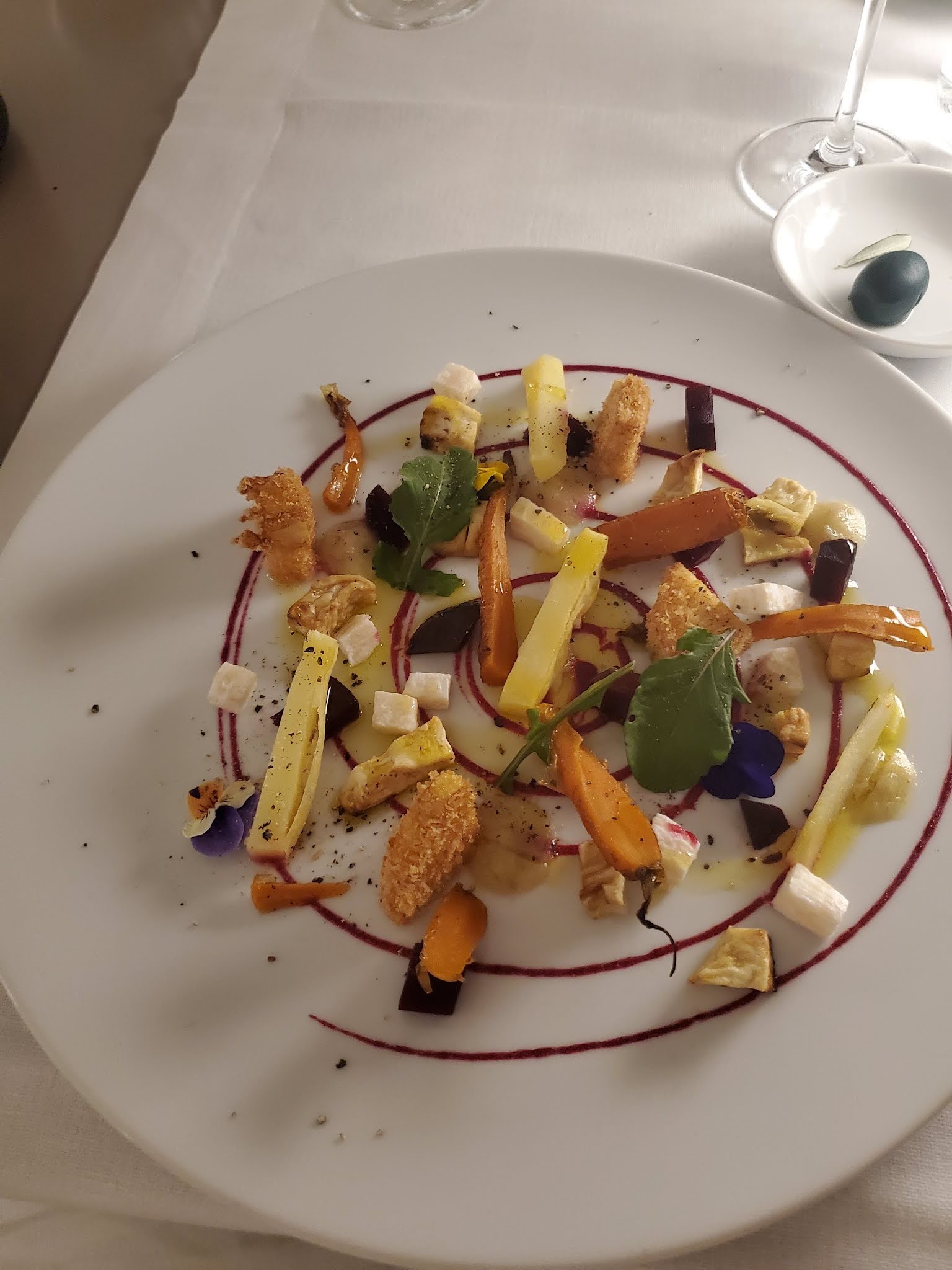 The vegetarian main course was a celebration of simplicity. Just some perfectly roasted vegetables with a balsamic raspberry sauce.