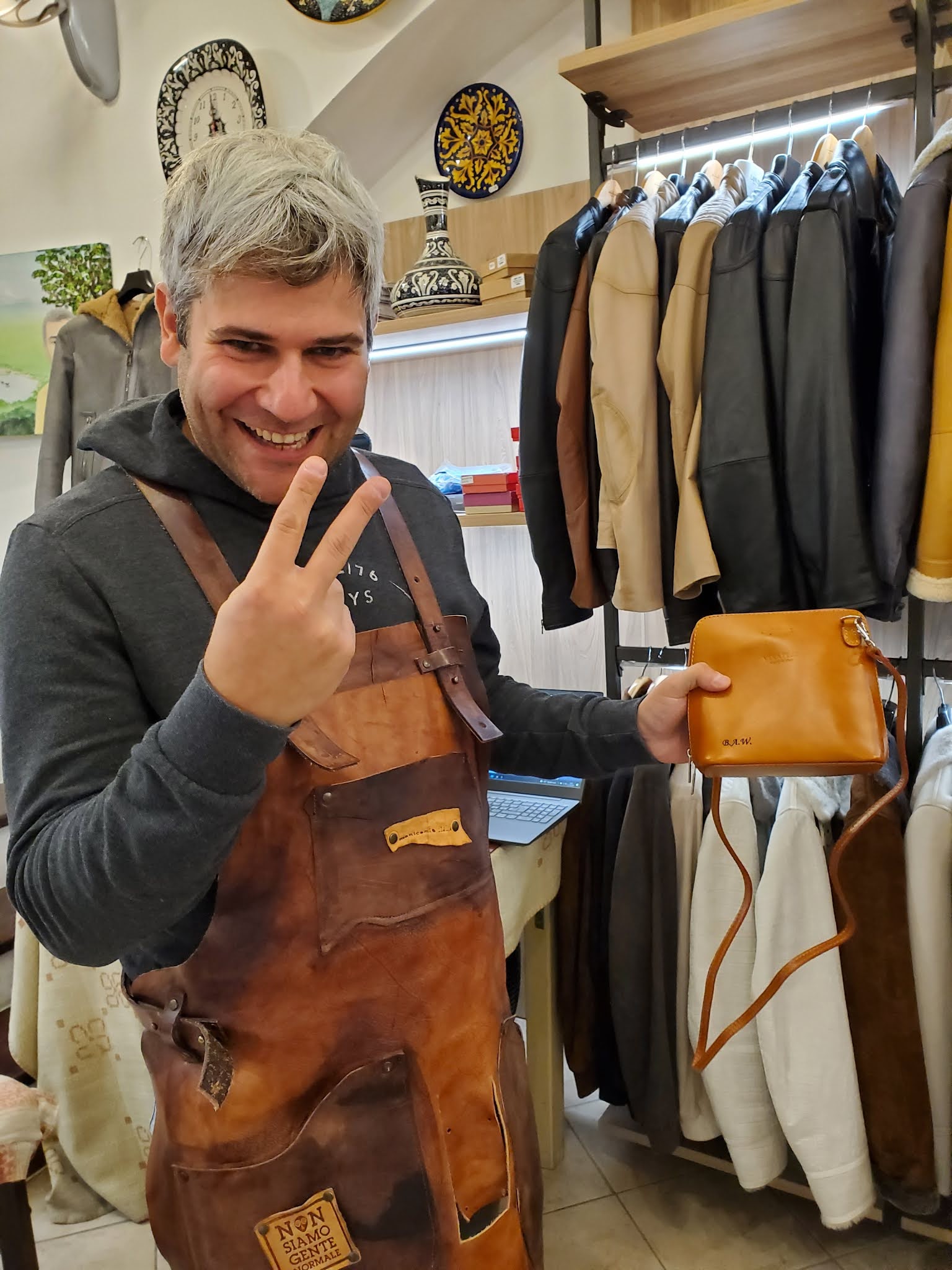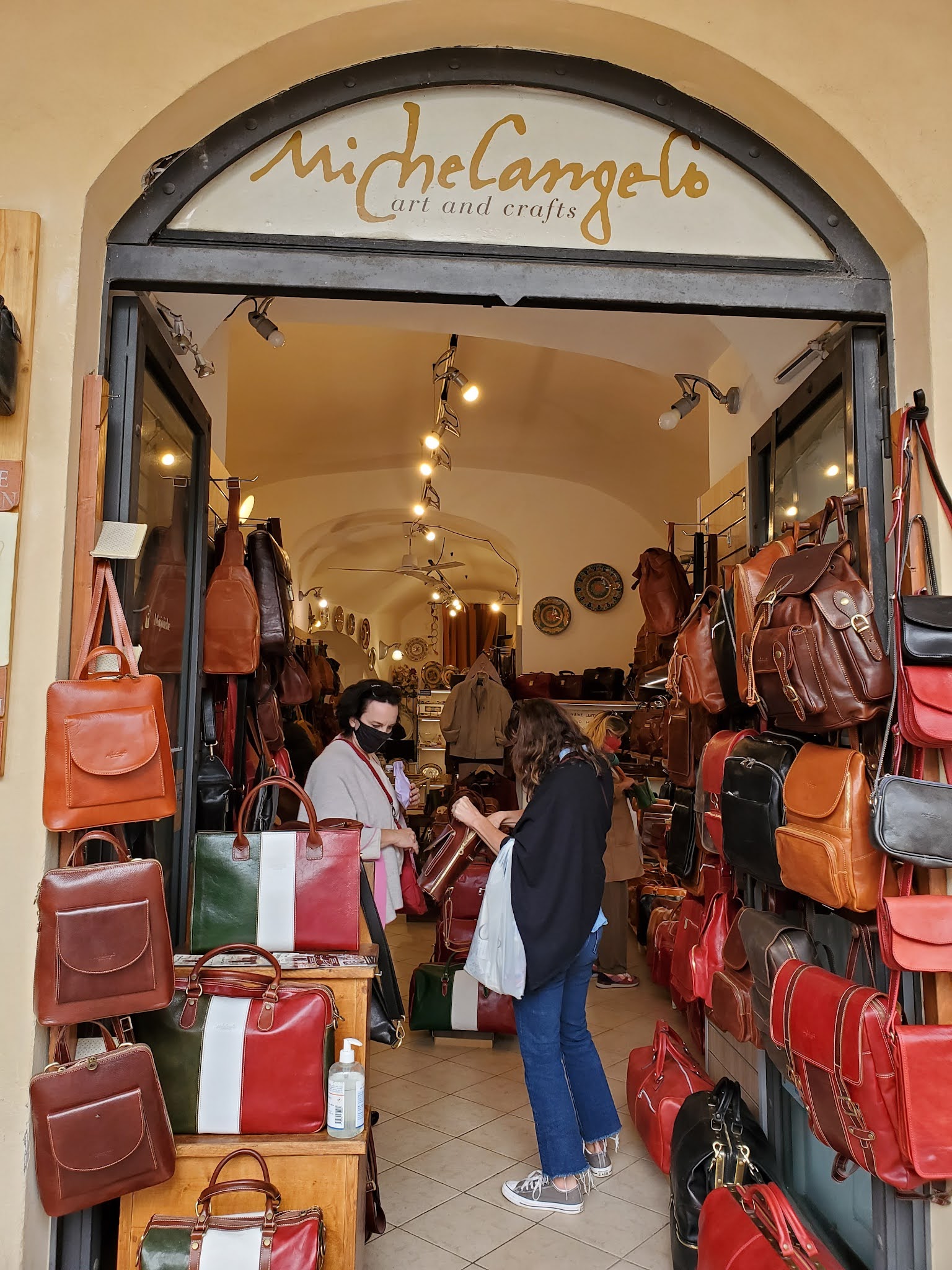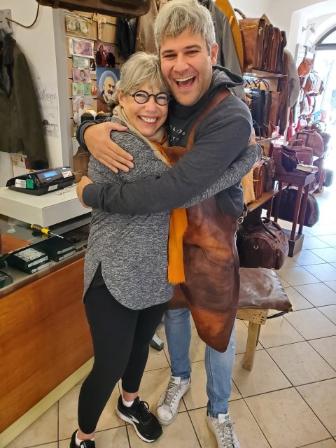 A little shop on the main plaza featured beautiful leather purses on display. Betsy was drawn to it like a moth to a flame. And there she met Michele Tomassini, a charming fourth-generation leather craftsman. Within minutes, they were laughing and talking like they had known each other for years.