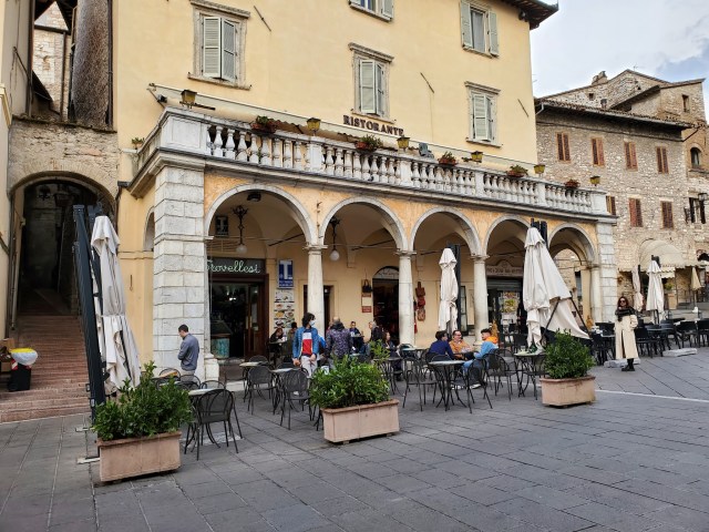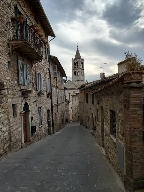 Fortified by a glass of wine, Betsy took off to explore more of Assisi. I stayed in to rest my foot for a while, read and relax. She walked from the top to the bottom and all around the city and snapped lots of photos.