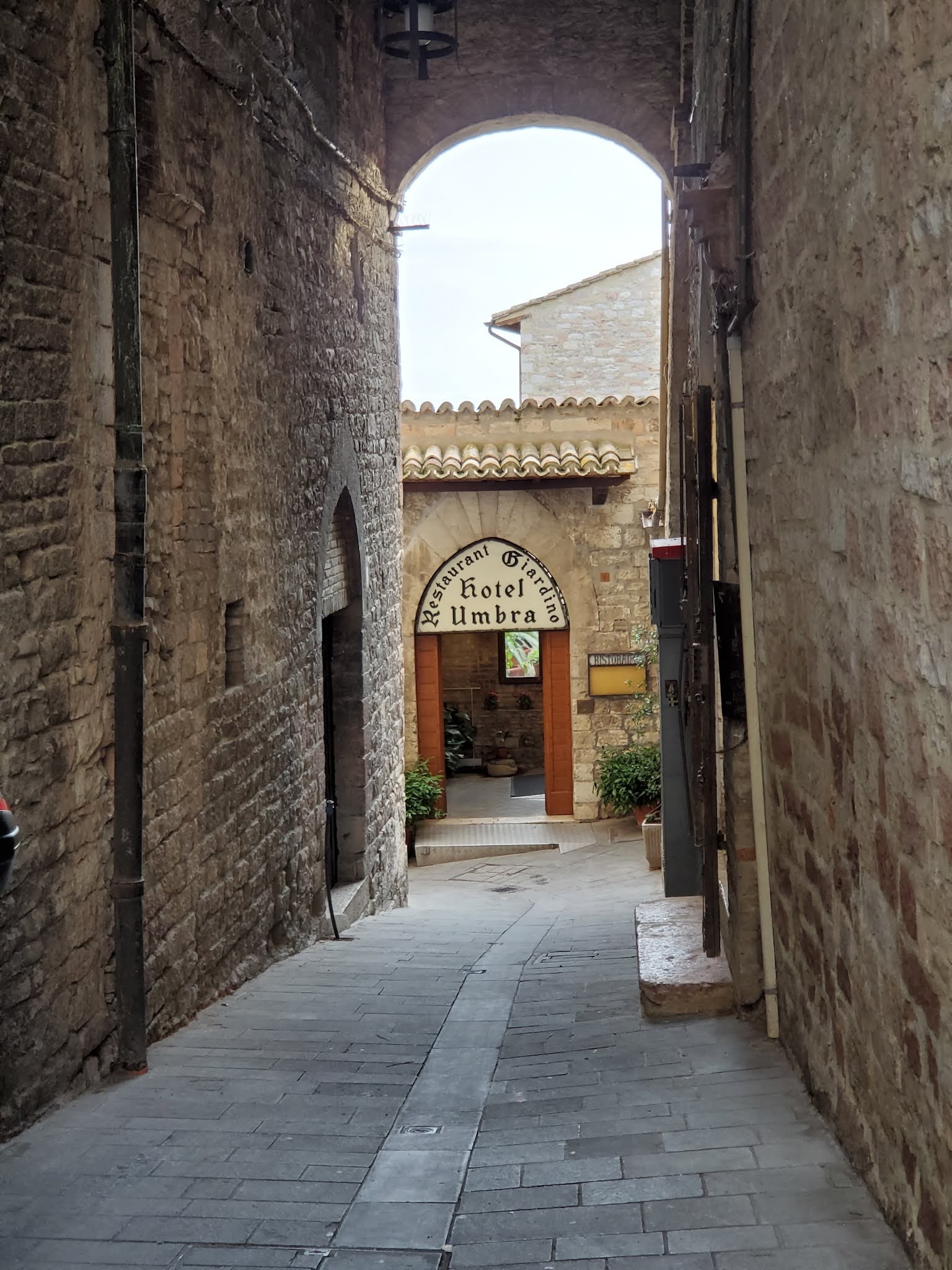 Instead, we packed our hiking gear and shipped it off to Nashville from a Mailboxes Etc. location, freeing up some space in our luggage for purchases. We rode with our luggage transfer to our hotel in Assisi. And to balance out life, our hotel is located at the very bottom of the steepest hill yet, so walking up to the Assisi town center is a hike each time.