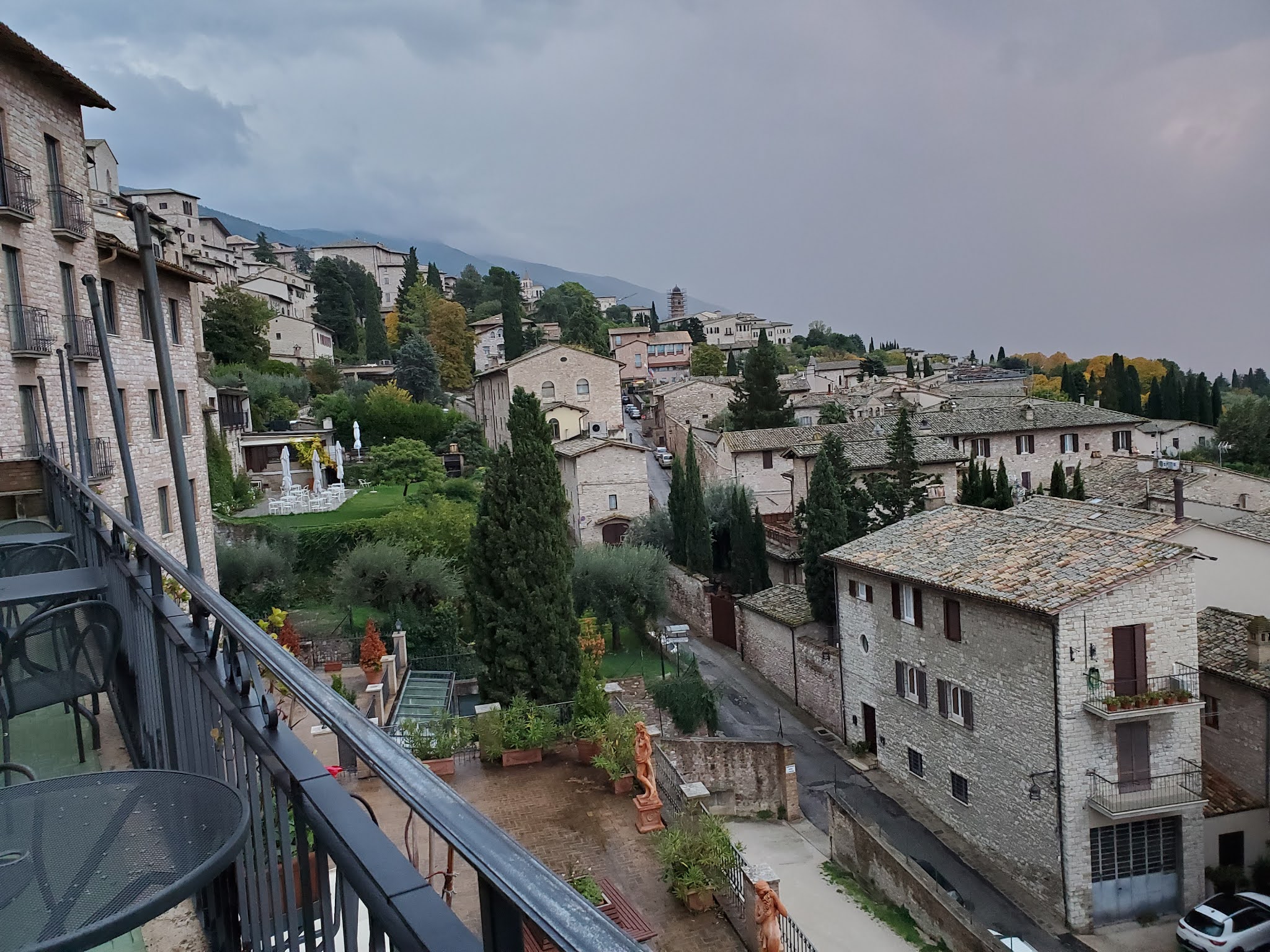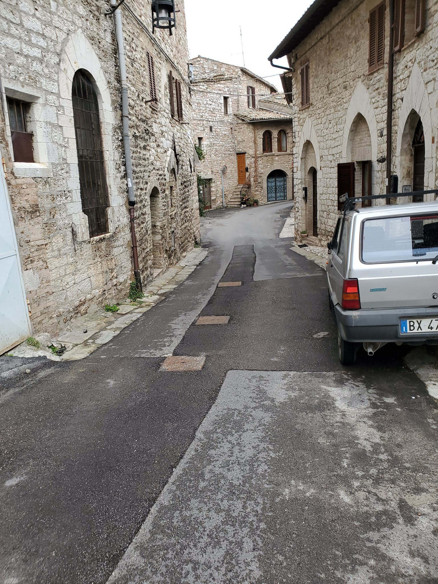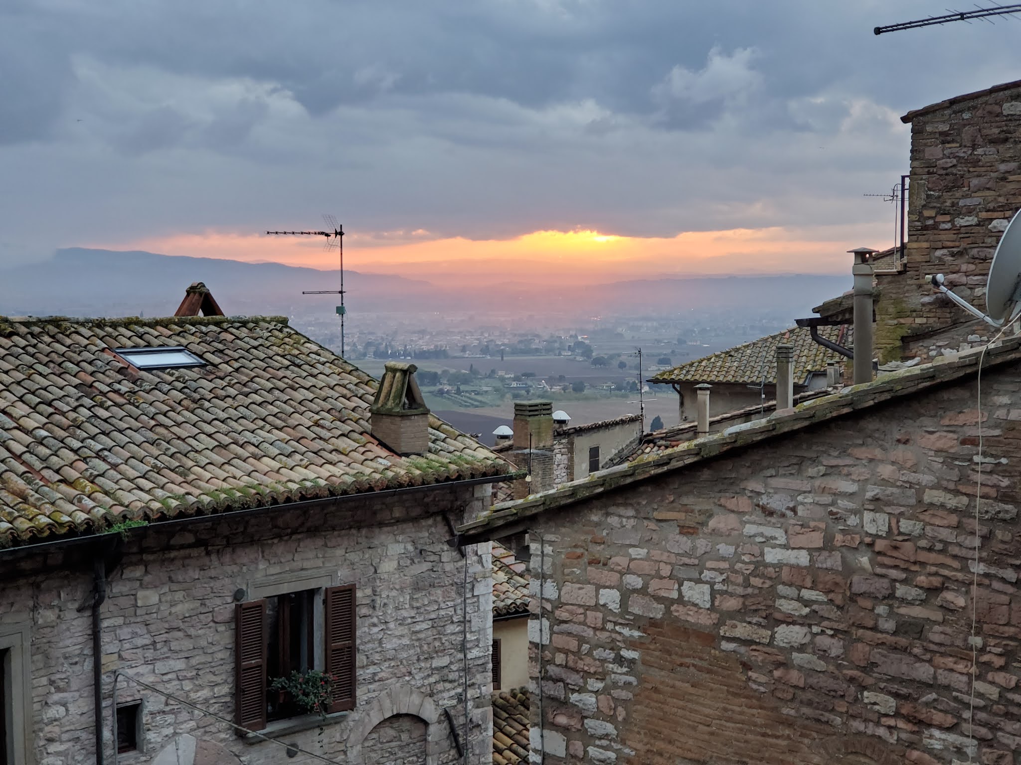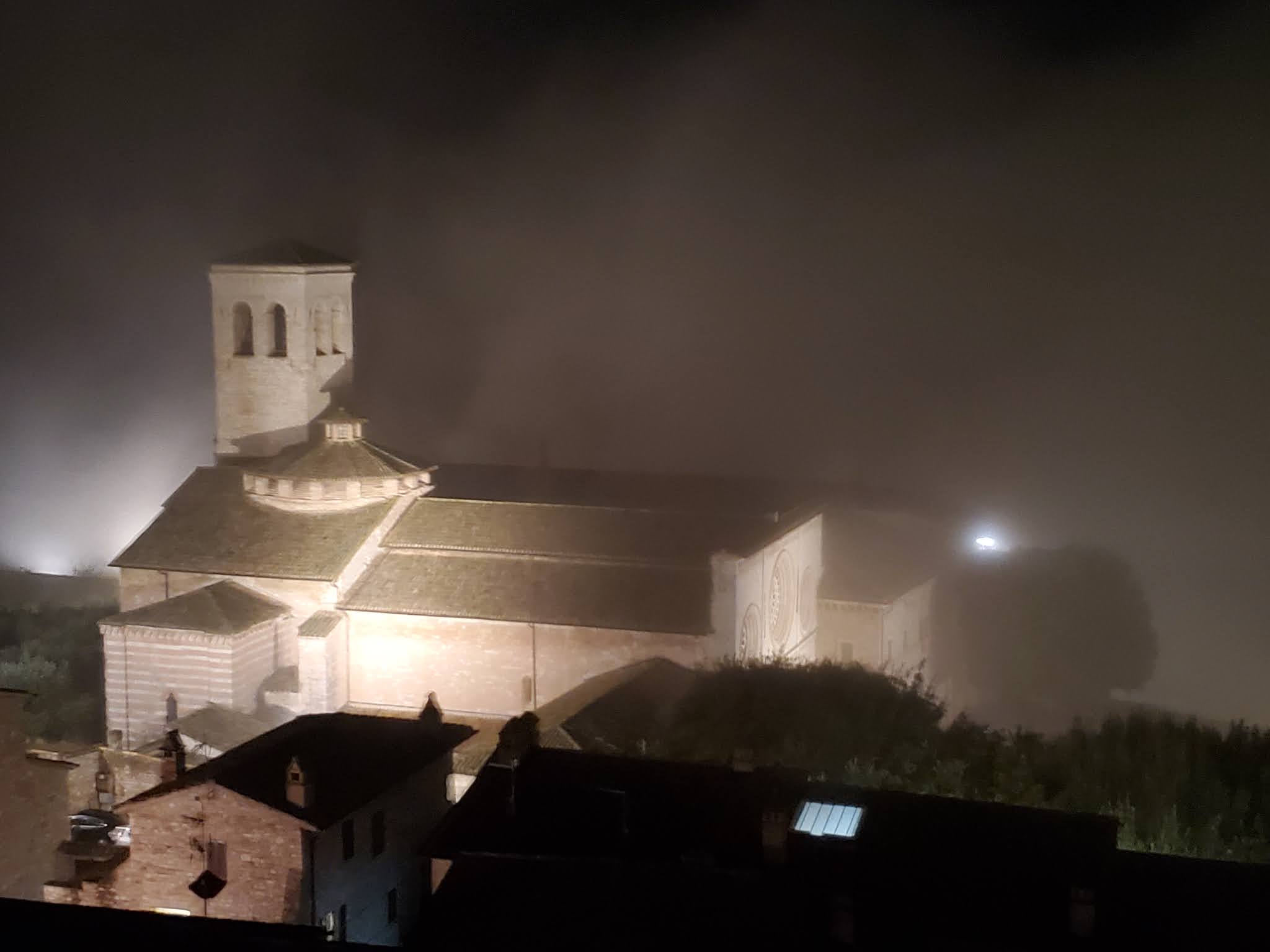 A heavy mist enveloped the hilltop of Assisi.