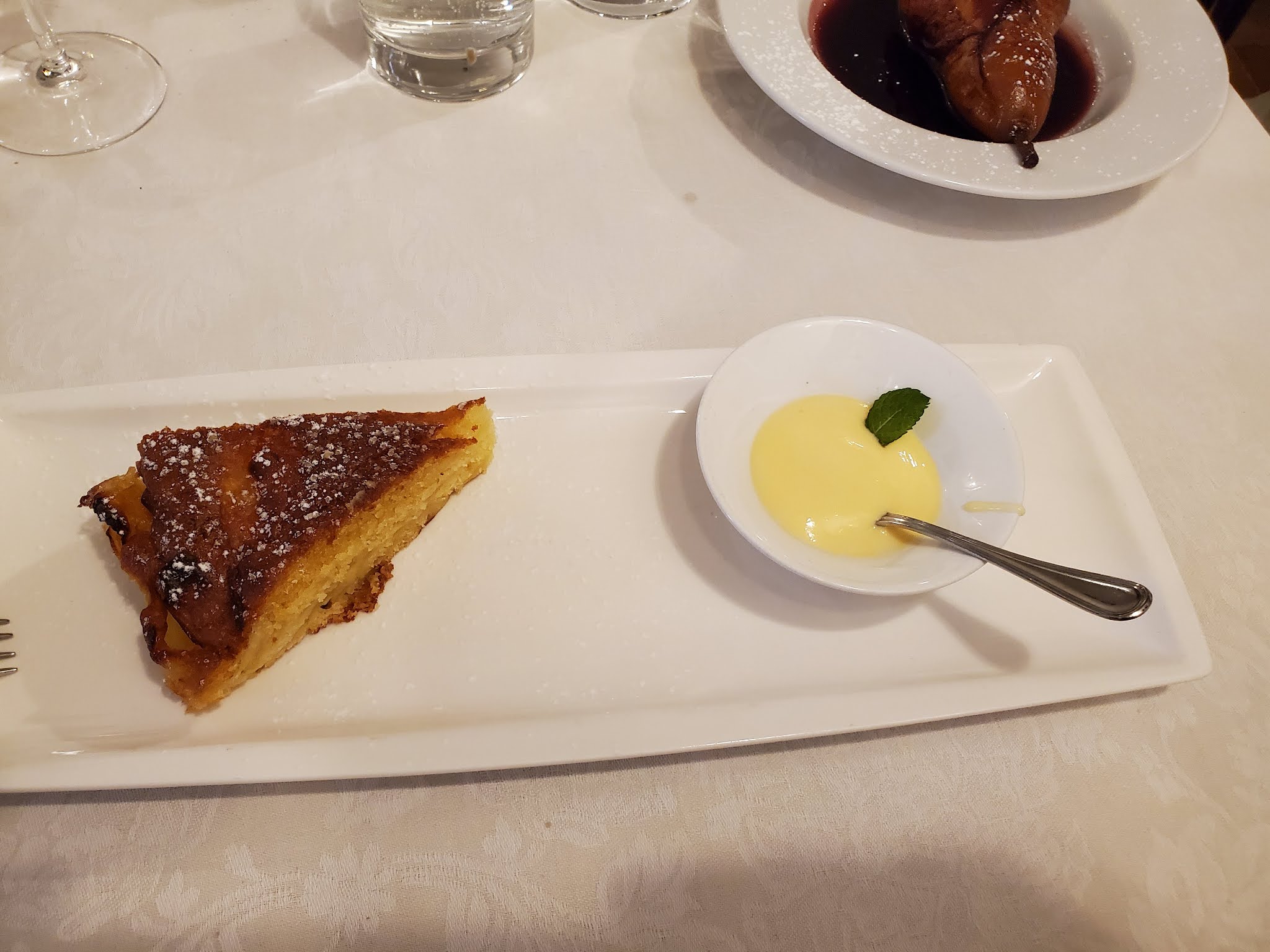 We didn’t get a picture of our appetizer dish which was a zucchini tart with yogurt sauce. Betsy plans to recreate that next week when we stay at the villa in Tuscany.