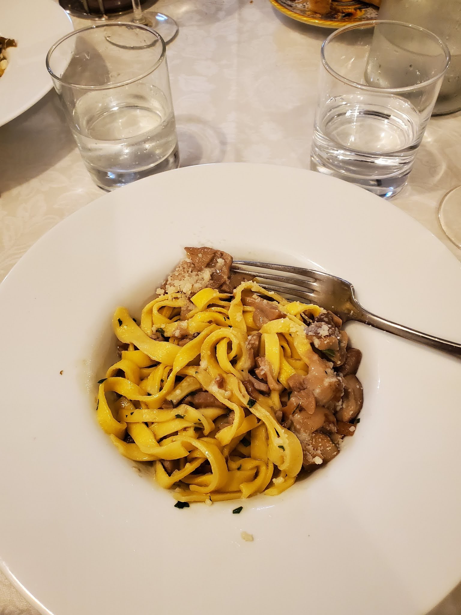 Handmade tagliatelle pasta with porcini mushrooms. It’s mushroom season and this is Italy, so pasta is always on the menu.