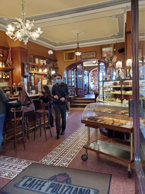 We stopped for a coffee at Caffe Poliziano, in business since 1878, on the way up the hill and then had lunch in the Poliziano restaurant, downstairs from the caffe, on the way back down the hill.