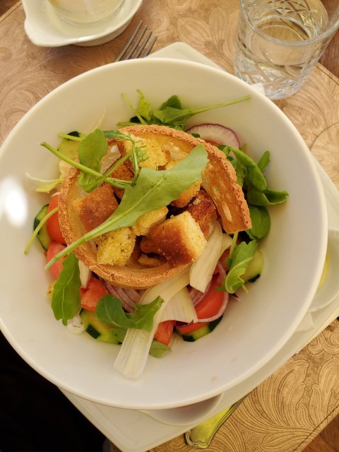 Betsy ordered the panzanella salad and Lisa had the ceasar salad. They looked pretty similar except for the addition of egg in Lisa’s dish and large croutons in Betsy’s. Both were fresh and delicious.