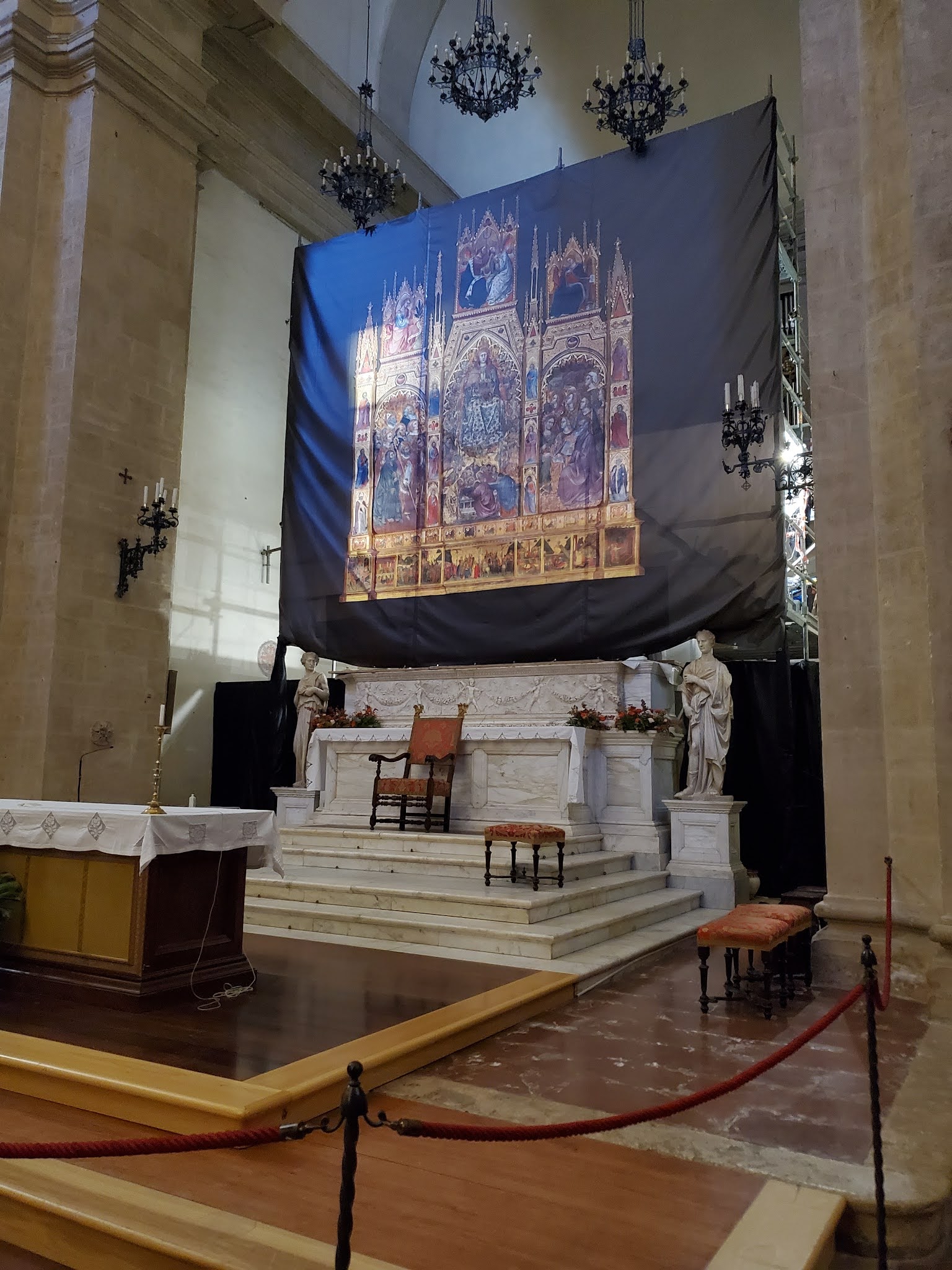The main artwork in the cathedral is the Triptych of the Assumption, painted by Taddeo di Bartolo in 1401. However, because it is currently undergoing restoration, we only saw an image of it hanging behind the altar where the original would have been; they provided a slide show outlining the history and details of this, one of the oldest intact triptychs in Italy.